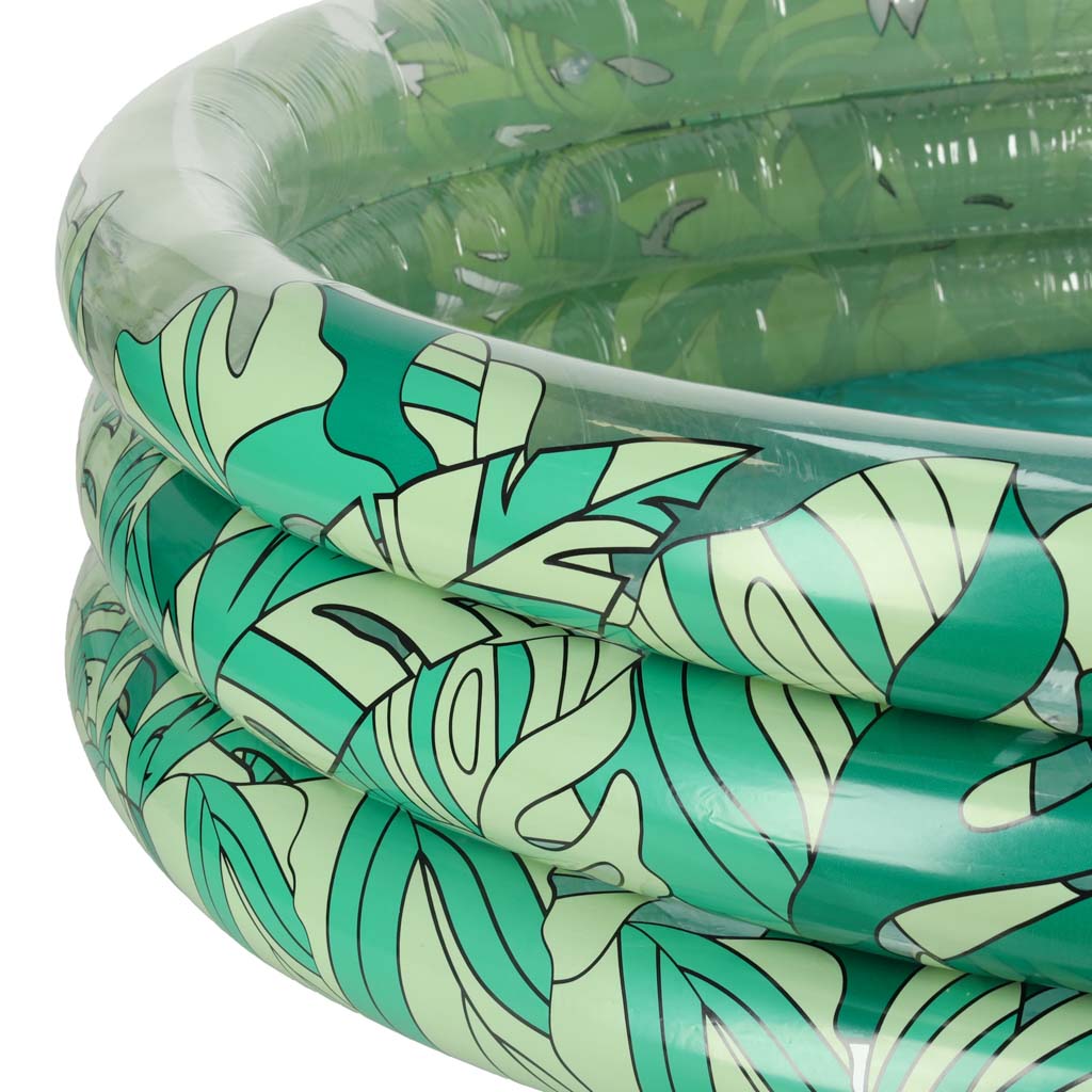 BASEN DMUCHANY DLA DZIECI 3 KOMORY 150CM LIŚCIE Niezależnie od wieku każdy zasługuje na odrobinę ochłody w basenie! Dlatego prezentujemy produkt, który z pewnością spodoba się Twojemu dziecku – dmuchany basen ogrodowy ! Pluskanie się w basenie to najlepsza rozrywka podczas gorących letnich dni – nie przecież tak dobrze nie chłodzi jak odrobina chłodnej wody! Dmuchany basen z pewnością sprawi, że każdy pobyt w ogrodzie zamieni się w niezwykłą wodną przygodę ! Co więcej, przebywanie w wodzie już od najmłodszych lat z pewnością będzie ogromnym ułatwieniem w późniejszej nauce pływania i zapobiegnie pojawieniu się strachu przed wodą! Dziecięcy basen ogrodowy o pięknej grafice w zielone liście będzie stanowić nie tylko miejsce do niezapomnianej rozrywki Twojego malucha, ale również będzie piękną dekoracją Twojego podwórka! Zabawa w basenie może być idealną okazją do wspólnej zabawy dzieci , dzięki swojemu rozmiarowi – średnicy wewnętrznej wynoszącej 130 centymetrów – w basenie spokojnie zmieści się co najmniej trójka dzieci, które będą mogły wspólnie bawić się i doświadczać fantastycznych przygód! Podczas tworzenia basenu pod uwagę wzięto każdy aspekt, dlatego też jest on zbudowany z trzech oddzielnie pompowanych pierścieni , dzięki czemu nawet gdy jeden z pierścieni się uszkodzi, z całego basenu nie zleci powietrze! Pomyślano też o szczelnych zaworach, które zapobiegają wydostawaniu się powietrza z napompowanych komór. Oraz przede wszystkim, produkt został stworzony z wysokiej jakości materiałów, które są nie tylko trwałe, ale również całkowicie bezpieczne w kontakcie z dziecięcą skórą! Wiek: 3+ Wymiary: Średnica wewnętrzna: 135 cm Średnica zewnętrzna: 150 cm Wysokość: ok. 44cm Opakowanie: 24 cm x 28 cm x 6 cm Zapakowane w kartonowe opakowanie.