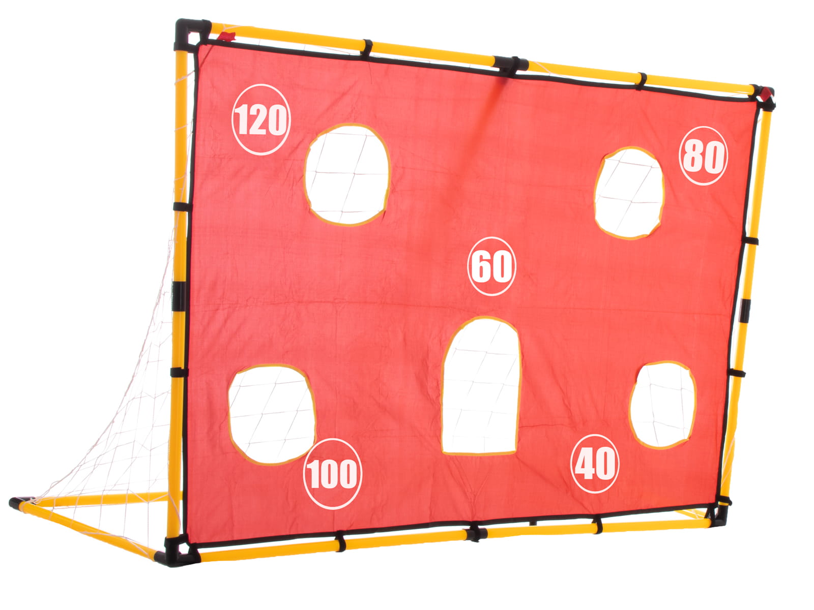 BRAMKAPIŁKARSKA Z MATĄ TERENIGOWĄ Poćwicz celność i stań się mistrzem piłki nożnej! Wspaniały zestaw skradnie serce każdego zapalonego fana piłkarskich rozgrywek. Możesz mieć pewność, że ta emocjonująca gra wciągnie na długie godziny. Duża bramka z matą, w której zostały wycięte otwory umożliwi trenowanie celnych strzałów do bramki bez konieczności angażowania bramkarza. Lubisz rywalizację, to świetnie! Możesz urządzić zawody angażując kilku graczy. Na macie zostały umieszczone cyfry oznaczające liczbę punktów, którą otrzyma piłkarz za trafienie. Zapisuj punkty i sprawdź kto zdobył ich więcej. Wygrany będzie mistrzem! Nie masz piłki? To nic, w zestawie ją znajdziesz w raz z pompką. Doskonale nadaje się do trenowania w domu i ogrodzie. Rewelacyjny zestaw zachęci dziecko do aktywnego spędzania wolnego czasu. Podczas gry dziecko poprawi swoją kondycję oraz rozwinie umiejętność analitycznego myślenia. Wspólna zabawa z rówieśnika nauczy umiejętności wygrywania, ale również ponoszenia przegranej z podniesioną głową. Zabawa zaczyna się już w momencie składnia. Bramka jest do samodzielnego montażu. Zaangażuj dziecko do jej zbudowania- z pewnością dostarczy to maluchowi mnóstwo satysfakcji i radości. Dodatkowo będzie świetnym treningiem logicznego myślenia.