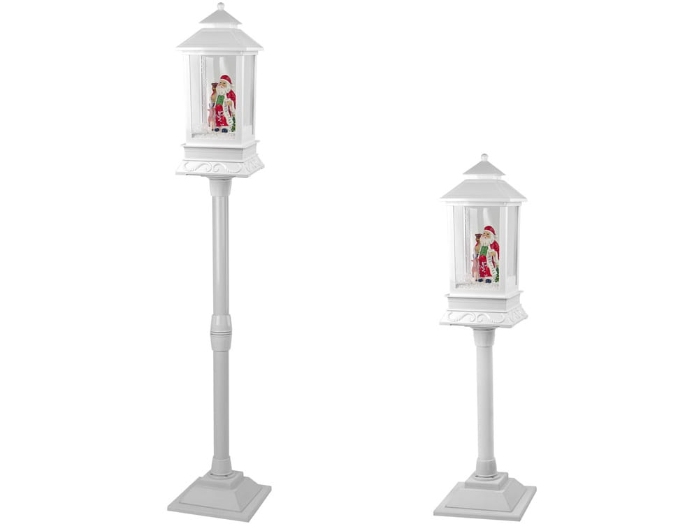 Przepiękna ozdoba świąteczna, która ozdobi Twój dom na nadchodzące święta. Wprowadzi ciepły i rodzinny nastrój do Twojego domu, tworząc go przytulnym i dodając świątecznego ducha. Idealna dekoracja również do centrów handlowych bądź sklepów, aby osoby robiące zakupy poczuły już klimat świąt Bożego Narodzenia. Latarnia ma piękne wzory, a całość jest w białym kolorze, charakterystyczny dla tego okresu. Wykonana z trwałego plastiku, przez co jest lekka i wytrzymała, bożonarodzeniowa ozdoba może być używana co roku, co czyni ją bardzo ekonomicznym wyborem i zakupem na lata. Pompa znajdująca się wewnątrz transportuje śnieg z podstawy i rozpyla go od góry, dając wrażenie padającego śniegu. Wewnątrz znajduje się wesoły Święty Mikołaj z workiem na plecach i długą listą dzieci, które w tym roku mają otrzymać prezenty.