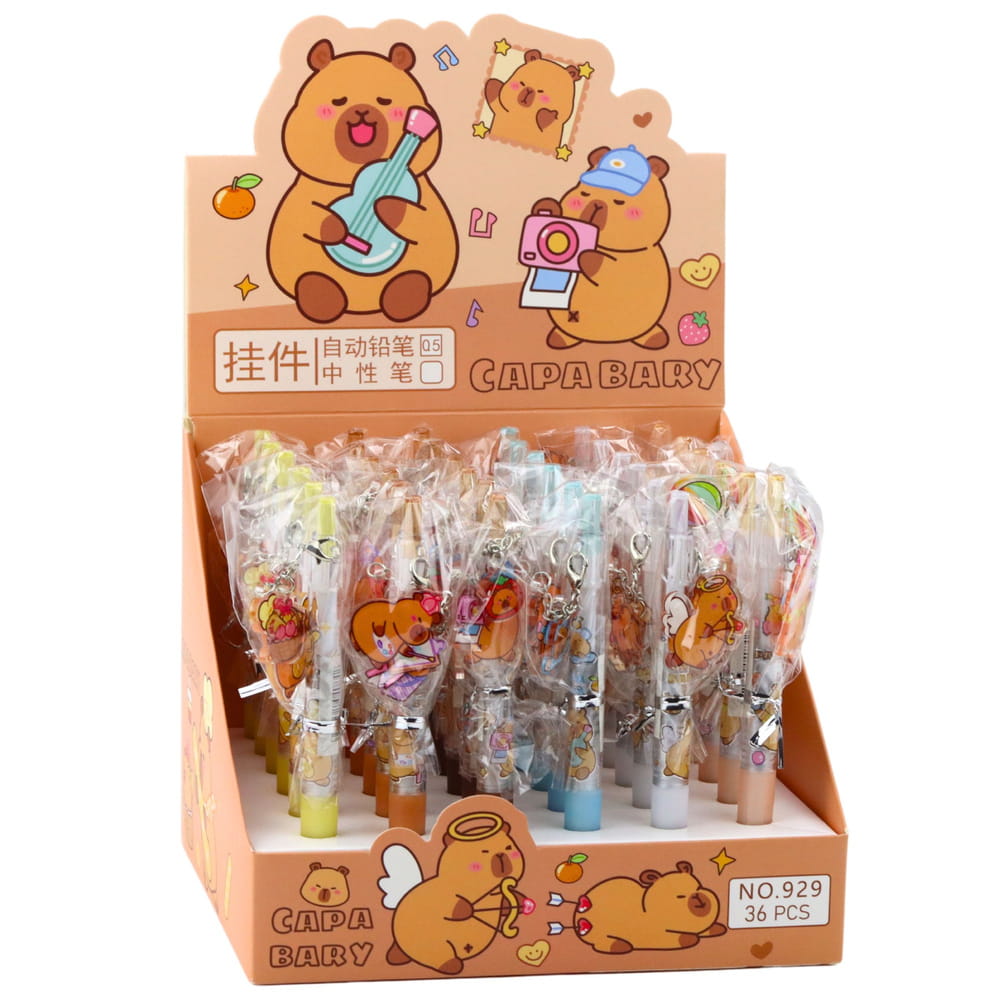 Uroczy długopis żelowy z motywem kapibary i dołączonym breloczkiem to idealne połączenie funkcjonalności i oryginalnego designu. Wykonany z lekkiego tworzywa, wyróżnia się kolorowym nadrukiem oraz przyczepionym na łańcuszku brelokiem z postacią kapibary, który można zdjąć lub wykorzystać jako ozdobę do piórnika, etui czy plecaka. Długopis pisze płynnie w kolorze niebieskim, co czyni go doskonałym do codziennego użytku – w szkole, na uczelni czy w biurze. Jego długość 14,5 cm sprawia, że dobrze leży w dłoni i zapewnia wygodę podczas pisania. Ten model to nie tylko praktyczny przyrząd piśmienniczy, ale również atrakcyjny dodatek dla fanów słodkich i kreatywnych akcesoriów papierniczych. W opakowaniu zbiorczym znajduje się 36 sztuk. Sprzedawane osobno, a wzór wybierany losowo.