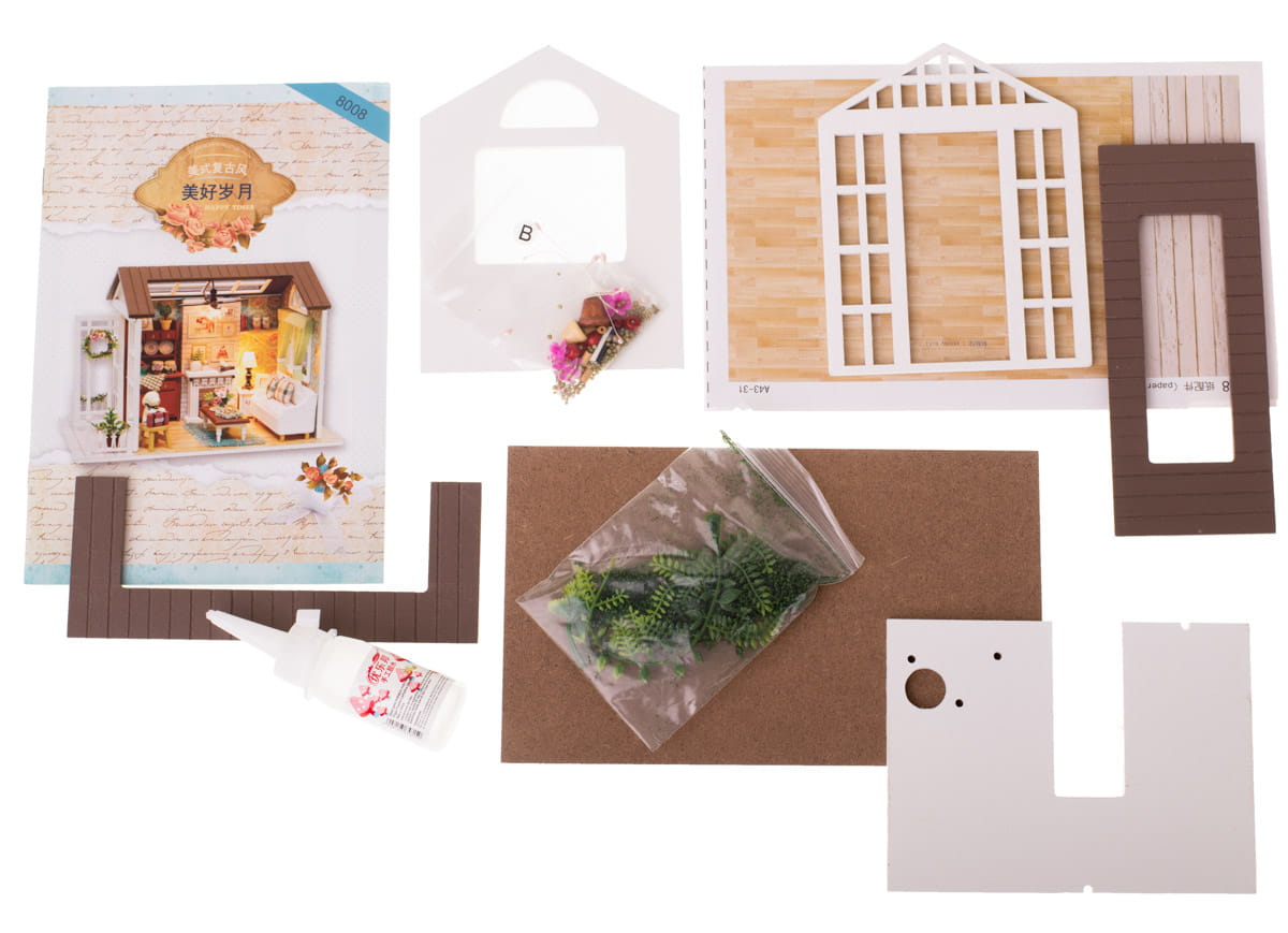 Domek dla lalek drewniany salon model do złożenia LED 8008-A 20,6cm