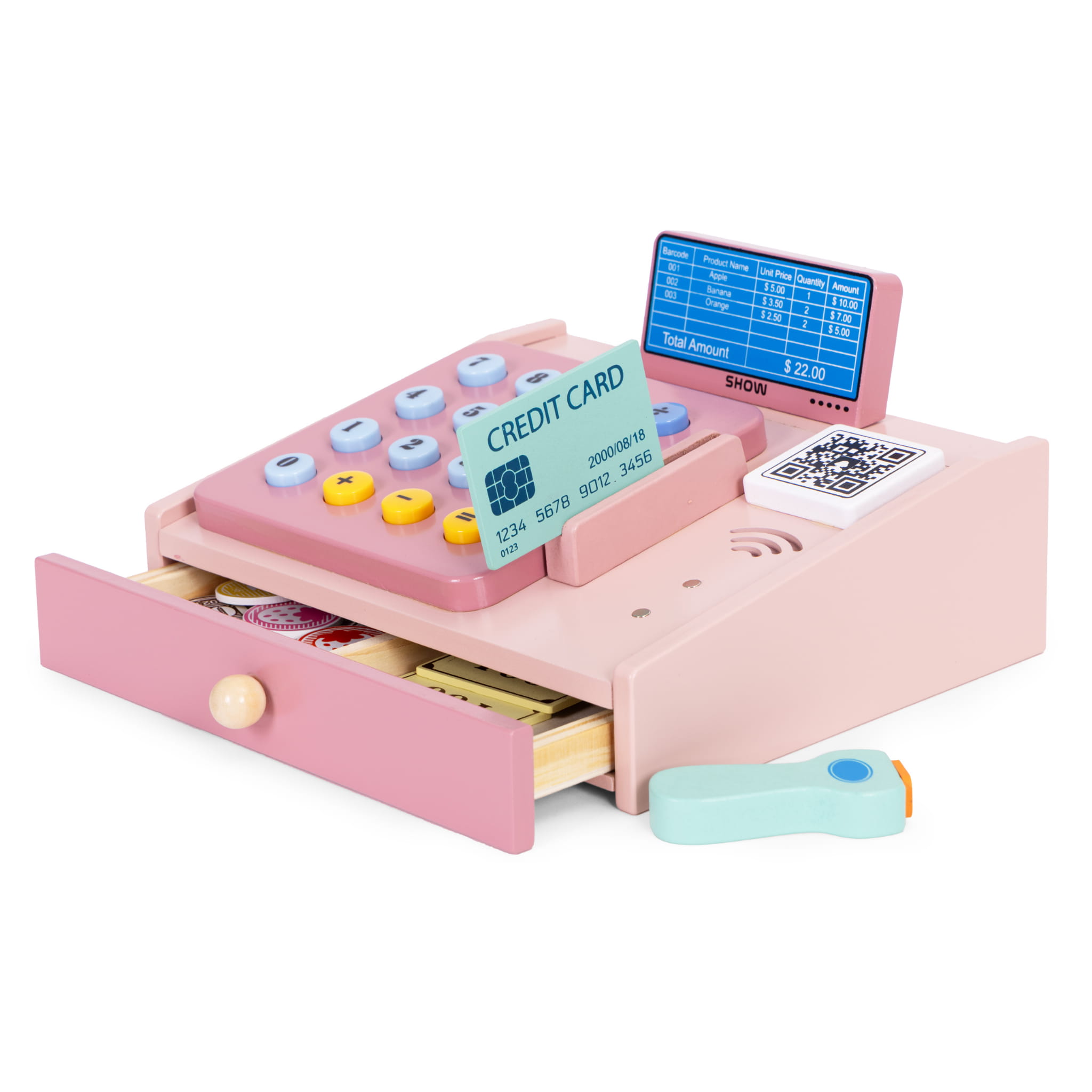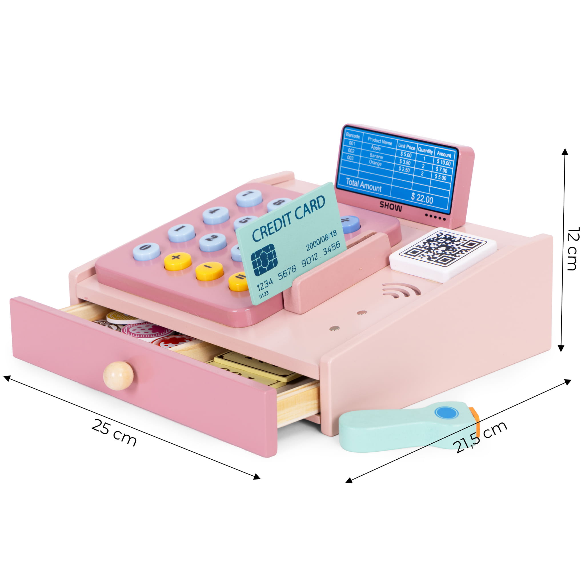 Drewniana kasa fiskalna dla dzieci skaner banknoty monety karta