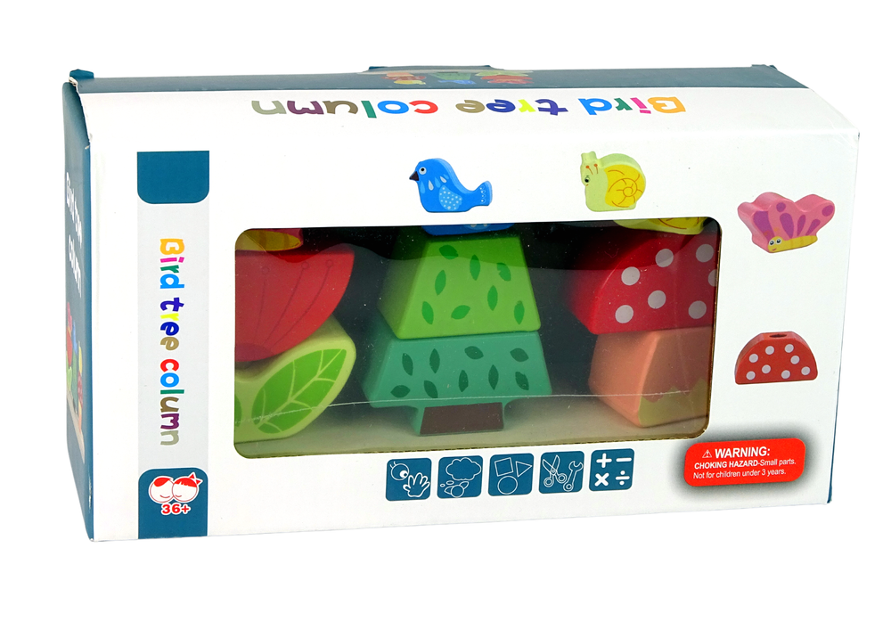 Drewniane Klocki Układanka Kwiat Motyl Ptak