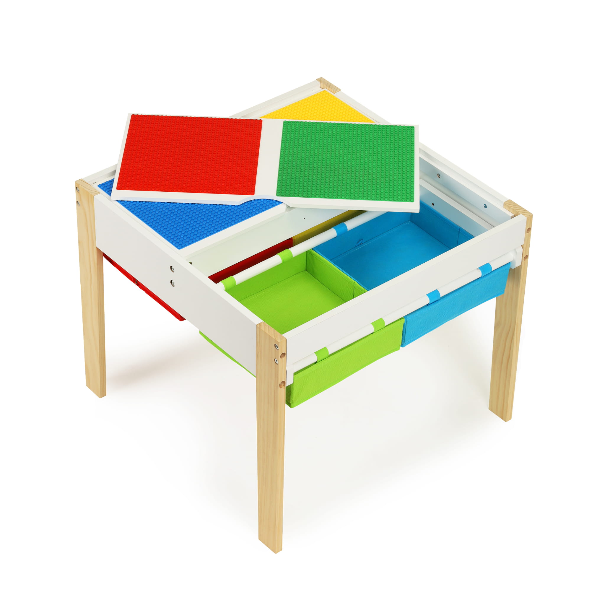 KOMPLET DZIECIĘCY STOLIK I KRZESŁA to idealne rozwiązanie do pokoju dziecięcego lub sal zabaw. Zestaw składa się z dwóch krzeseł oraz stolika, który zapewnia stabilność dzięki solidnym, sosnowym nogom. Blat stolika jest dwuczęściowy i zdejmowany, co pozwala na łatwe dostosowanie do różnych aktywności. Na jednej stronie blatu znajdują się kolorowe plansze do układania klocków, a druga strona to płaska powierzchnia, idealna do rysowania i malowania. Dodatkowo, stół wyposażony jest w cztery wysuwane przegrody, które pomieszczą wszystkie niezbędne akcesoria do zabawy. Prosty design w skandynawskim stylu sprawia, że zestaw wpasuje się w każdy wystrój. Dzięki temu meble są nie tylko funkcjonalne, ale również estetyczne. To wspaniały wybór dla wszystkich maluchów, które uwielbiają kreatywne zabawy!