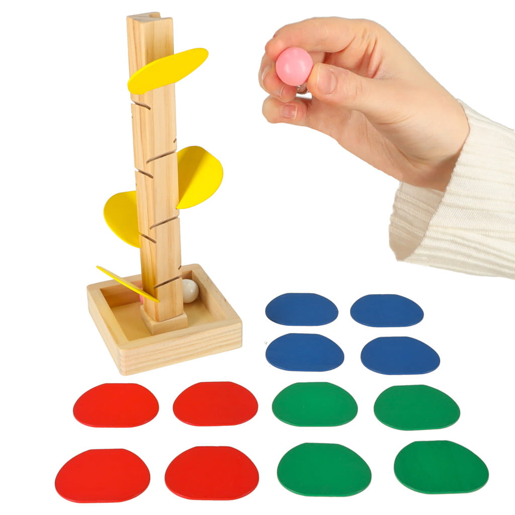Drzewko edukacyjne klocki drewniane tor kulkowy Kulodrom Montessori