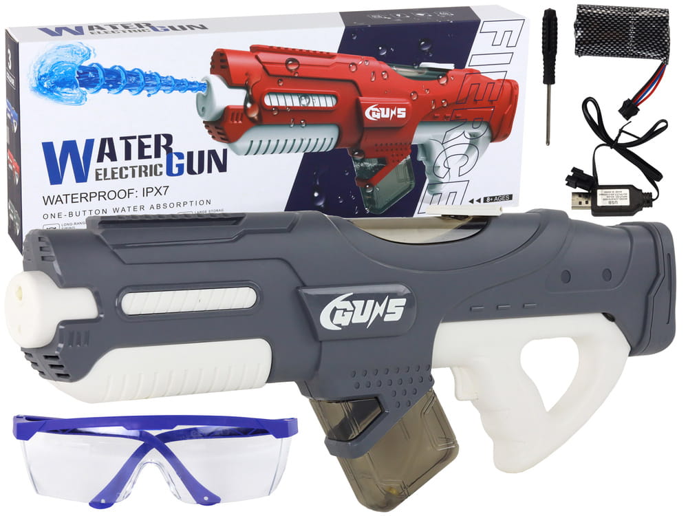 Zapraszamy do odkrycia najnowszego hitu w świecie letnich zabaw – Duży Szary Pistolet na Wodę zasilany akumulatorem. Ten potężny, szary karabin to niekwestionowany król letnich bitew wodnych! Zbiornik o imponującej pojemności 750 ml pozwoli Ci cieszyć się zabawą bez konieczności częstego uzupełniania. Dzięki wodoszczelnemu korpusowi możesz śmiało walczyć o zwycięstwo, nie martwiąc się o trwałość swojego sprzętu. Niezwykła elastyczność pistoletu pozwala na uzupełnianie wody w sposób wygodny i efektywny. Możesz zanurzyć lufę karabinu w wodzie lub skorzystać z innowacyjnego wtrysku wody na górze pistoletu. To nie tylko oszczędność czasu, ale także dodatkowa dawka frajdy podczas przygotowań do kolejnego starcia! W zestawie znajdziesz także stylowe okulary, które nie tylko zabezpieczą Twoje oczy, ale również dodadzą Ci uroku podczas letnich bitew. Bądź gotowy na lawinę wodnych emocji!