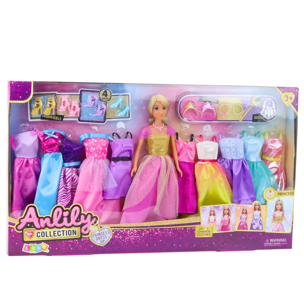 Lalka Anlily z kolekcją bajkowych sukienek i akcesoriów to marzenie każdej dziewczynki kochającej modę, kolory i kreatywną zabawę. Zestaw zawiera piękną lalkę o wysokości 30 cm, ubraną w elegancką balową sukienkę, a także 10 dodatkowych kreacji, które umożliwiają tworzenie niepowtarzalnych stylizacji każdego dnia. Każda z sukienek różni się kolorem i fasonem – są wśród nich modele balowe, klasyczne, bajkowe i codzienne, co pozwala na różnorodną i kreatywną zabawę. Oprócz bogatej garderoby w zestawie znajdują się również 4 pary butów oraz stylowe dodatki: 2 korony, 2 naszyjniki, różdżka i torebka. Dzięki tym elementom lalka może wcielać się w rolę księżniczki, modelki lub bohaterki własnych bajek. Dziecko może samodzielnie komponować stroje, rozwijać wyobraźnię, ćwiczyć zręczność manualną i tworzyć niekończące się scenariusze zabawy. Zestaw został wykonany z bezpiecznych, trwałych materiałów i jest przeznaczony dla dzieci od 3. roku życia. Wszystkie elementy są dopracowane w detalach, a całość zapakowano w estetyczne pudełko z przezroczystym frontem, które doskonale nadaje się na prezent.