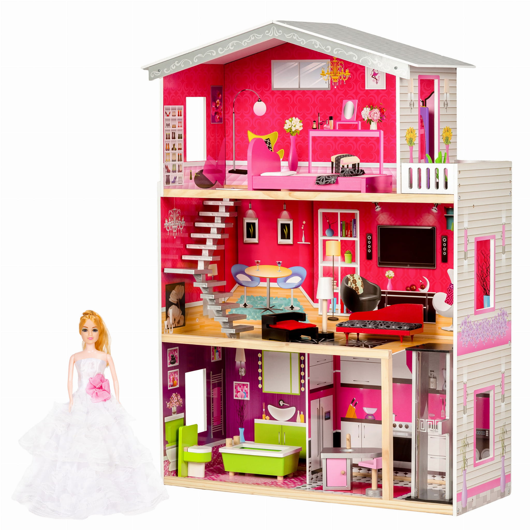 Duży drewniany domek z windą dla lalek - Rezydencja Malibu ECOTOYS