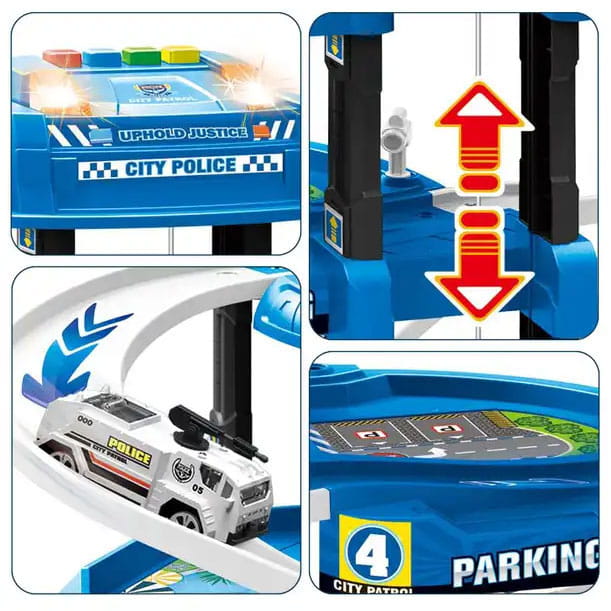 Garaż samochodowy XXL komenda policji 5 poziomów + mata z miastem 82 elementy