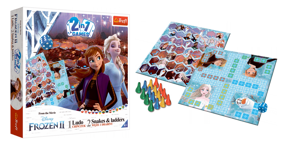 Gra dla dzieci 2w1 Chińczyk Węże i drabiny Kraina Lodu II Trefl 02068