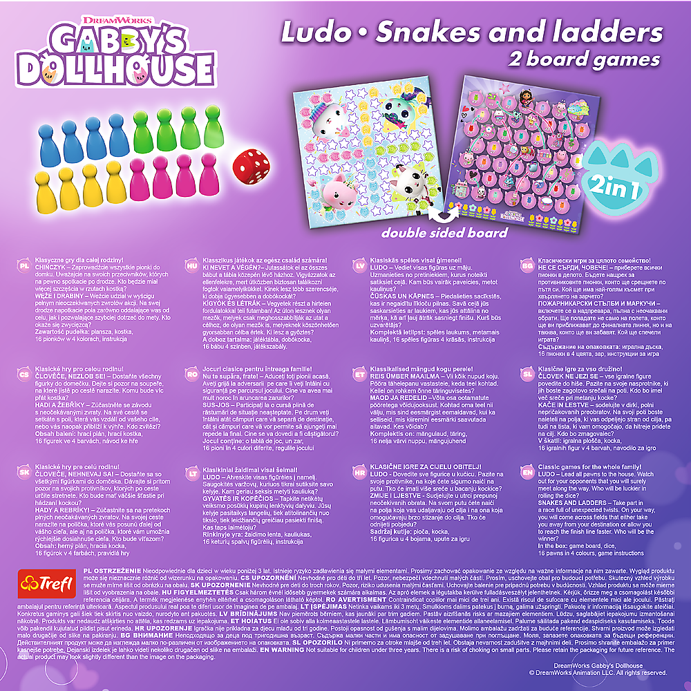 Gra 2w1 Chińczyk - Węże i drabiny Gabbys Dollhouse 02590 to doskonała propozycja dla miłośników gier planszowych. Dwie klasyczne gry w jednym opakowaniu, a wszystko to w bajkowej oprawie, która zachwyci fanów bajki Koci Domek Gabi. Chińczyk to znana i lubiana gra, w której macie za zadanie doprowadzić wszystkie swoje pionki do domku, zanim zrobią to przeciwnicy. W grze Węże i Drabiny weźmiecie udział w wyścigu pełnym nieoczekiwanych zwrotów akcji. Na swojej drodze napotkacie zarówno pola, które ułatwią dotarcie do mety, jak i takie, które Was niej oddalą. To wspaniała zabawa dla całej rodziny, która rozwija zdolności strategiczne i logiczne myślenie. Idealna na rodzinne wieczory, spotkania ze znajomymi czy jako prezent dla najmłodszych. Każda rozgrywka przynosi nowe emocje i radość!