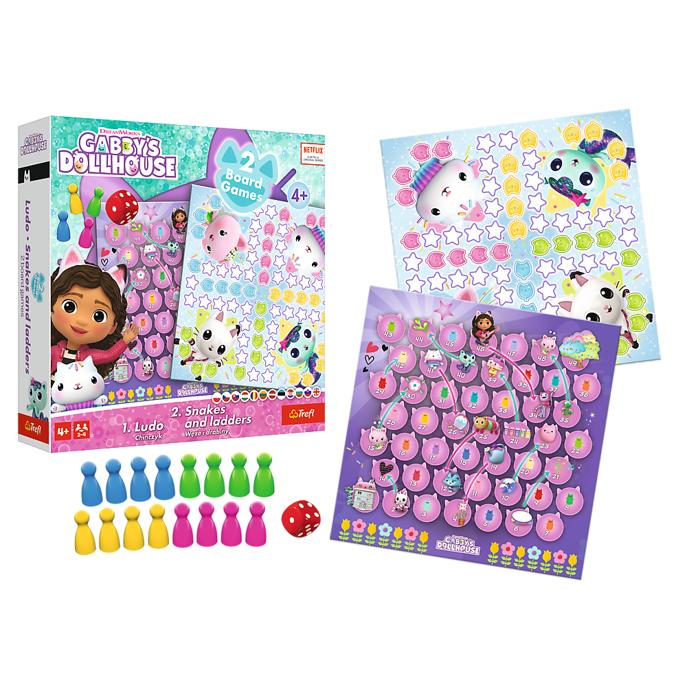Gra klasyczna 2w1 Chińczyk, Węże i drabiny Koci Domek Gabi Trefl 02590