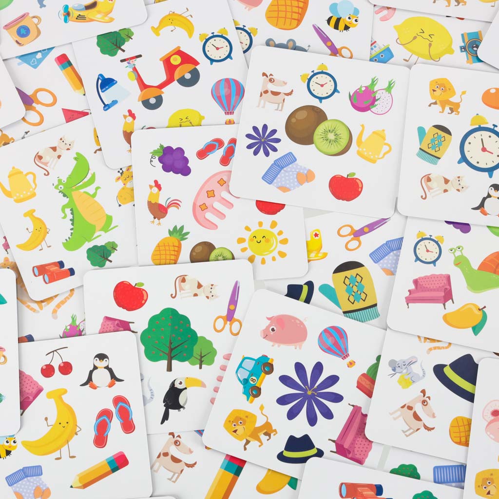 - Karty z obrazkami – 54 karty z różnymi kolorowymi obrazkami