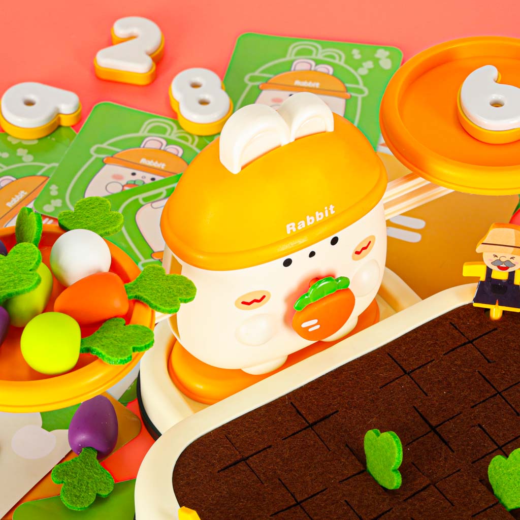 GRA PLANSZOWA ZRĘCZNOSCIOWA POLE MARCHEWEK Marchewkowe Wyzwania - interaktywna gra edukacyjna dla najmłodszych odkrywców! Witaj w kolorowym świecie zabawy i nauki! Ten kreatywny zestaw inspirowany ogrodem to prawdziwa przygoda dla malucha - pełna niespodzianek, kolorów i aktywności. Dziecko wciela się w rolę małego ogrodnika, który musi zebrać odpowiednie warzywa, rozpoznając ich wielkość, kształt i barwę. To nie tylko świetna zabawa, ale także trening logicznego myślenia i zręczności. Sadzenie i zbieranie marchewek rozwija sprawność manualną, a zabawa w "kto szybciej zbierze plony" wprowadza nutkę zdrowej rywalizacji. Uroczy królik na górze zestawu pilnuje równowagi, co dodaje emocji do zabawy. Dzieci uczą się podstaw fizyki i logicznego myślenia poprzez układanie marchewek. Zestaw angażuje dziecko w emocjonującą zabawę, która rozwija koordynację ręka-oko oraz zdolności motoryczne. Idealny prezent dla przedszkolaków, Marchewkowy Ogródek to doskonały sposób na wspólne spędzanie czasu z rodzeństwem i rodzicami!