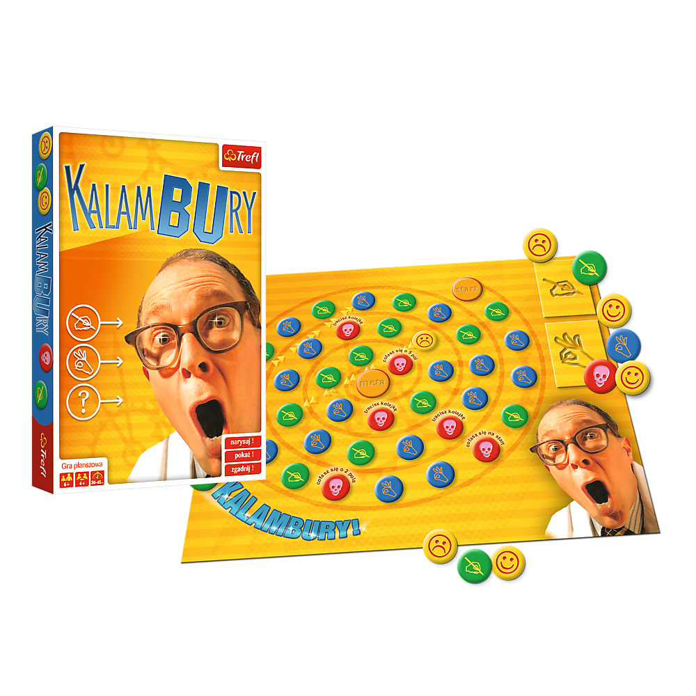 Kalambury to znana i lubiana zabawa w odgadywane haseł. Narysuj! Pokaż! Zgadnij! Tym razem gracze poruszają się pionkami po planszy, na której oprócz poleceń „Pokaż” i „Narysuj” czekają, zmieniające przebieg rozgrywki, pola specjalne. Uważaj, bo możesz stracić kolejkę lub cofnąć się swoim pionkiem do pola „Start". Czy potrafisz pokazać i narysować hasła tak, aby Twój partner odgadł je w określonym czasie? Klepsydra ogranicza czas rundy do dwóch minut, co gwarantuje dynamiczny przebieg rozgrywki. Pamiętajcie, by przy pokazywaniu nie pisnąć ani słowa! Sprawdź się w odlotowej, rodzinnej grze Kalambury. Ta gra to idealny sposób na wspólne spędzanie czasu i rozwijanie umiejętności aktorskich oraz kreatywności. Kalambury to również świetny pomysł na prezent na różne okazje, takie jak urodziny czy Dzień Dziecka. Dołącz do zabawy i przekonaj się, jak wiele radości może przynieść ta gra!