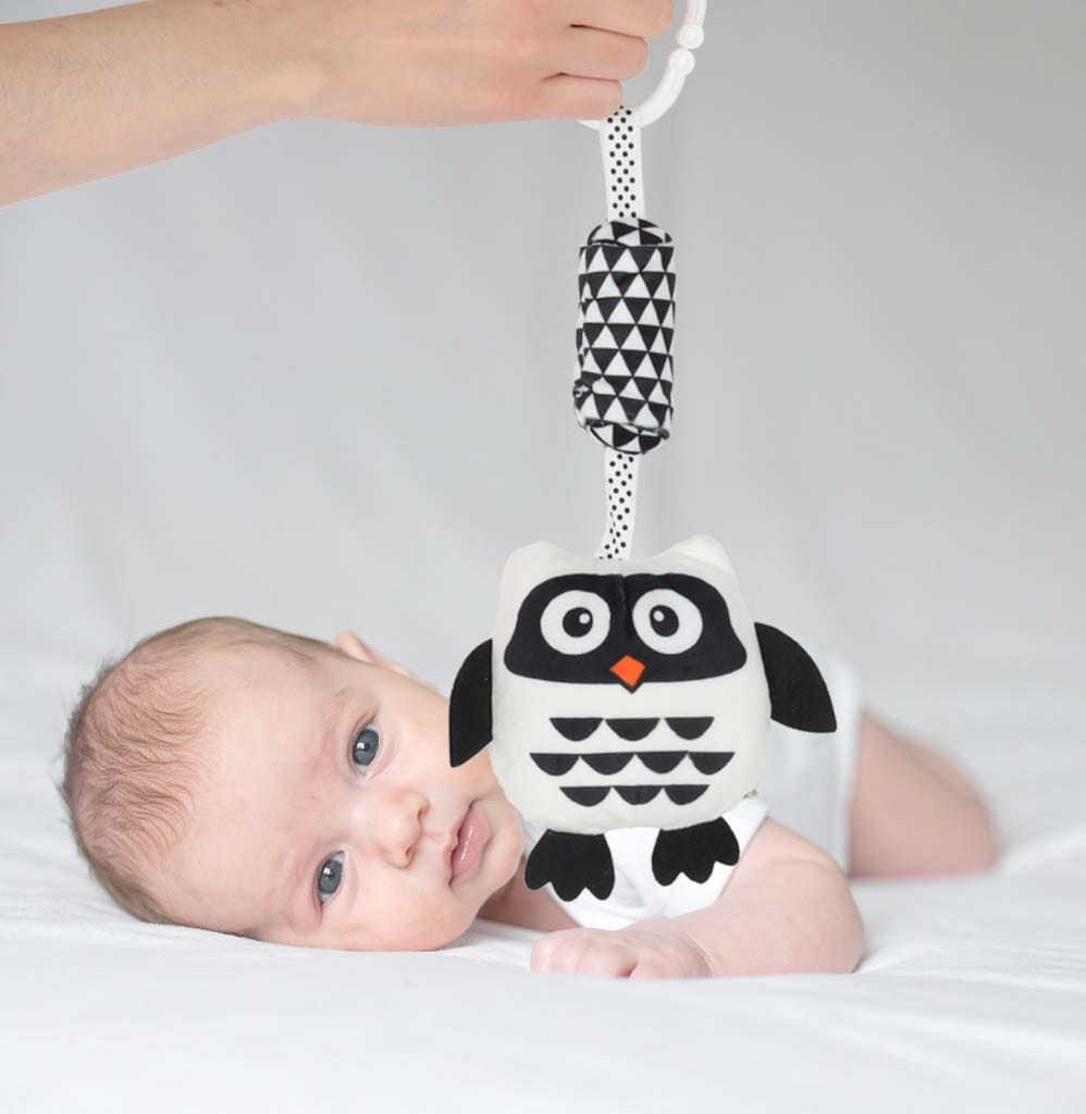 Grzechotka zawieszka sensoryczna kontrastowa sowa