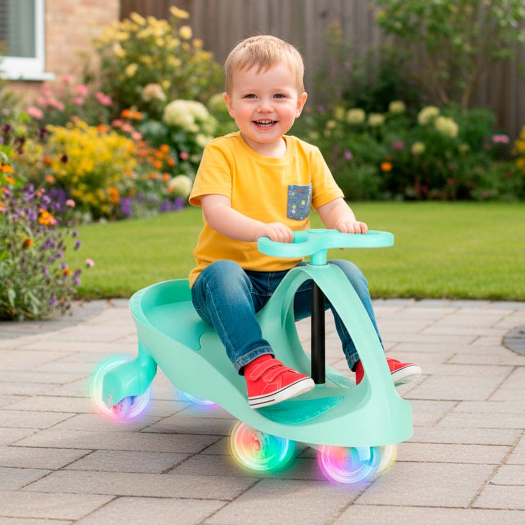 JEŹDZIK GRAWITACYJNY ŚWIECĄCE KOŁA LED MIĘTOWY to niesamowity produkt, który zapewni Twojemu dziecku wiele radości i zabawy! Dzięki innowacyjnej konstrukcji, maluch może poruszać się bez użycia nóg, co czyni jazdę jeszcze bardziej ekscytującą. Wystarczy, że dziecko poruszy kierownicą, aby jeździk ruszył do przodu! Wygodne, wyprofilowane siedzenie oraz antypoślizgowe nakładki pod nóżki gwarantują komfort i bezpieczeństwo podczas zabawy. Szerokość kierownicy została starannie dopasowana do małych rączek, co ułatwia manewrowanie. Świecące kółka LED przyciągają uwagę, a kauczukowe kółka chronią podłogę przed zarysowaniami. Szeroko rozstawione tylne kółka zapewniają stabilność, co minimalizuje ryzyko przewrócenia się. Jeździk grawitacyjny to idealny wybór dla aktywnych dzieci, które uwielbiają ruch i zabawę!