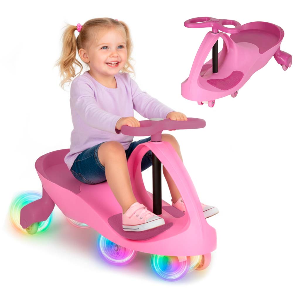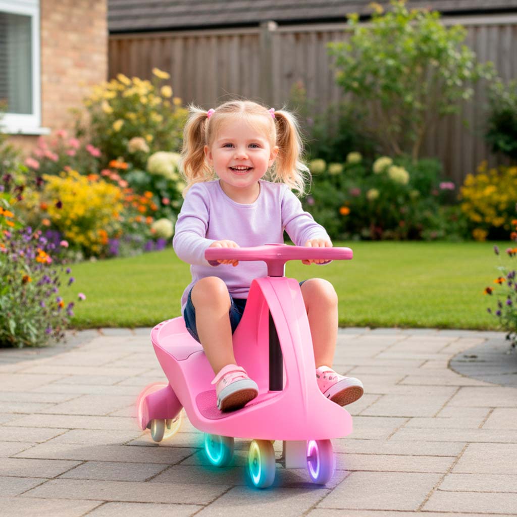 JEŹDZIK GRAWITACYJNY ŚWIECĄCE KOŁA LED RÓŻOWY Niesamowity jeździk grawitacyjny to interesujący produkt dający dziecku możliwość zabawy na różne sposoby! A czym właściwie jest jeździk grawitacyjny? To prosta zabawka, którą maluch wprawia w ruch dzięki poruszaniu naprzemiennie kierownicą! Pozwala to na możliwość jazdy beż użycia nóg do odpychania się od podłogi! Wygodne, wyprofilowane siedzenie i antypoślizgowe nakładki pod nóżki gwarantują wysoki komfort zabawy! Szerokość kierownicy została dobrana w taki sposób, aby była idealnie dopasowana do rąk dziecka! Świecące kółka dają Ci pewność, że produkt przyciągnie uwagę Twojego malucha! A Ty jako rodzic na pewno ucieszysz się, że dzięki kauczukowym kółkom podłoga zostanie ochroniona przed zarysowaniami! Warto też zaznaczyć, że szeroko rozstawione tylne kółka zapewniają bezpieczną zabawę - pozwolą uniknąć przewrócenia się jeździka! Maksymalne obciążenie produktu wynosi 80 kg, a wytrzymała konstrukcja daje gwarancję bezpieczeństwa i wielokrotnego korzystania! Możesz mieć pewność, że jeździk grawitacyjny zachwyci wszystkie dzieci!