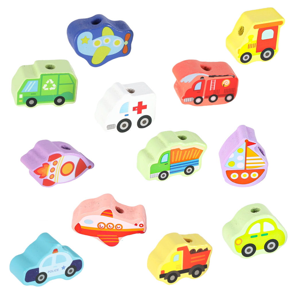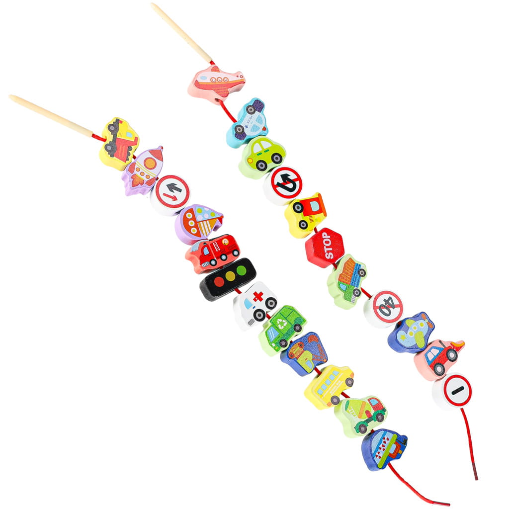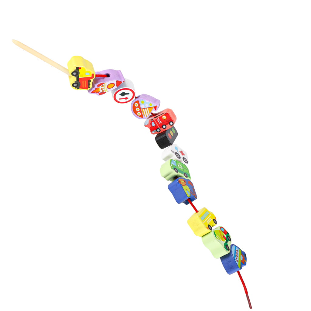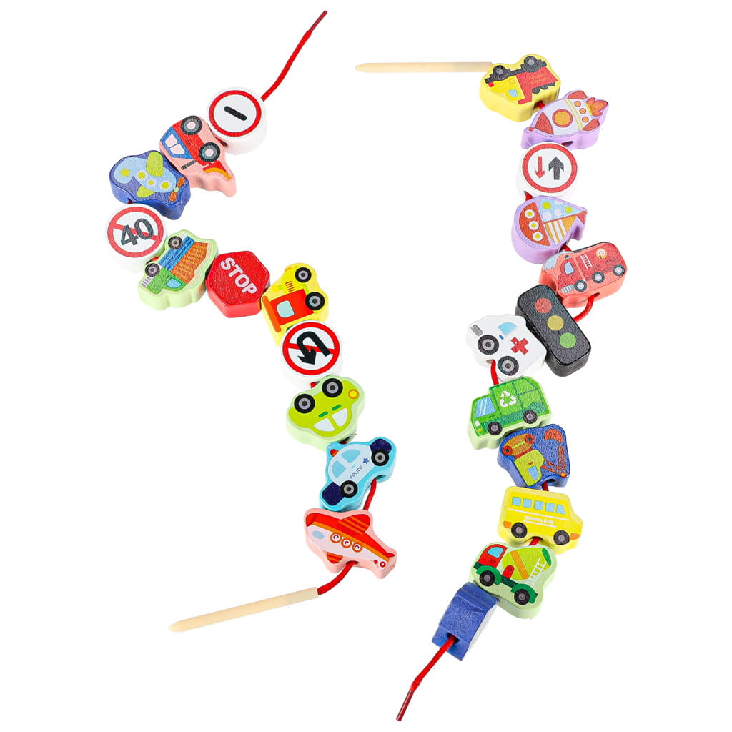 Klocki drewniane do nawlekania pojazdy znaki drogowe