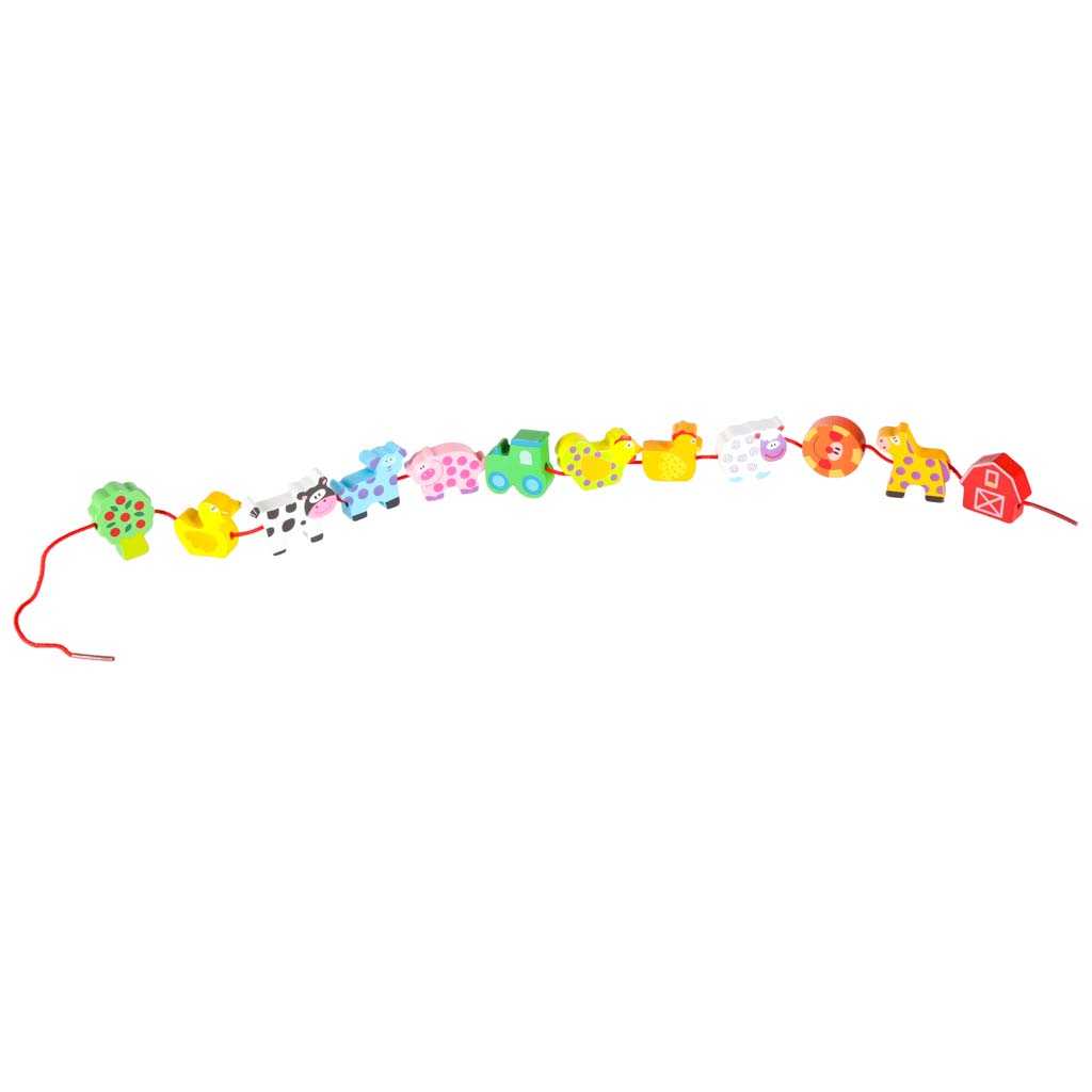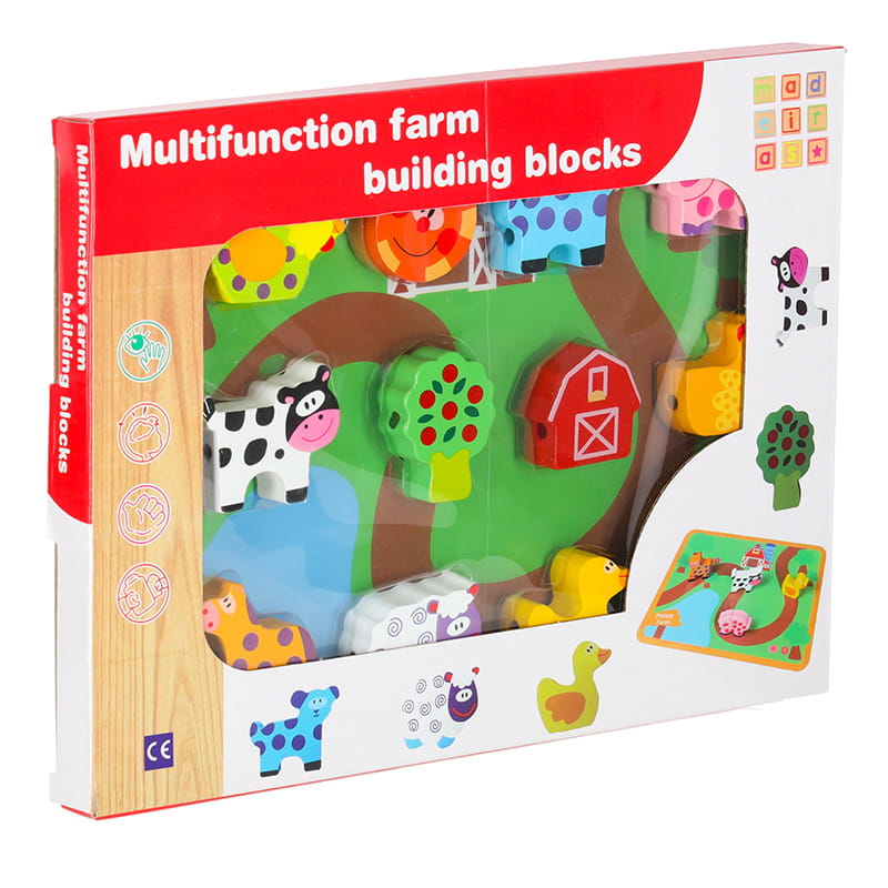 Klocki drewniane do nawlekania tablica plansza farma zwierzęta