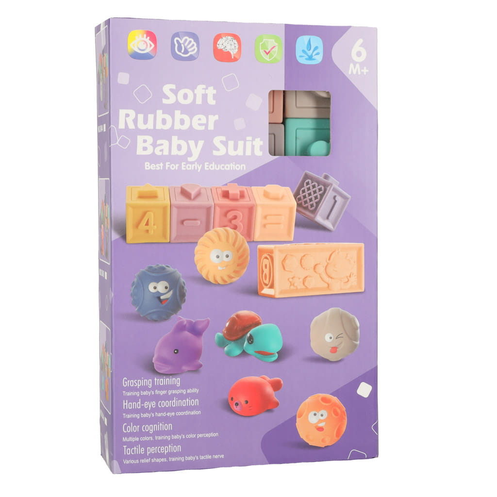 Klocki piłki sensoryczne miękkie edukacyjne 15 elementów