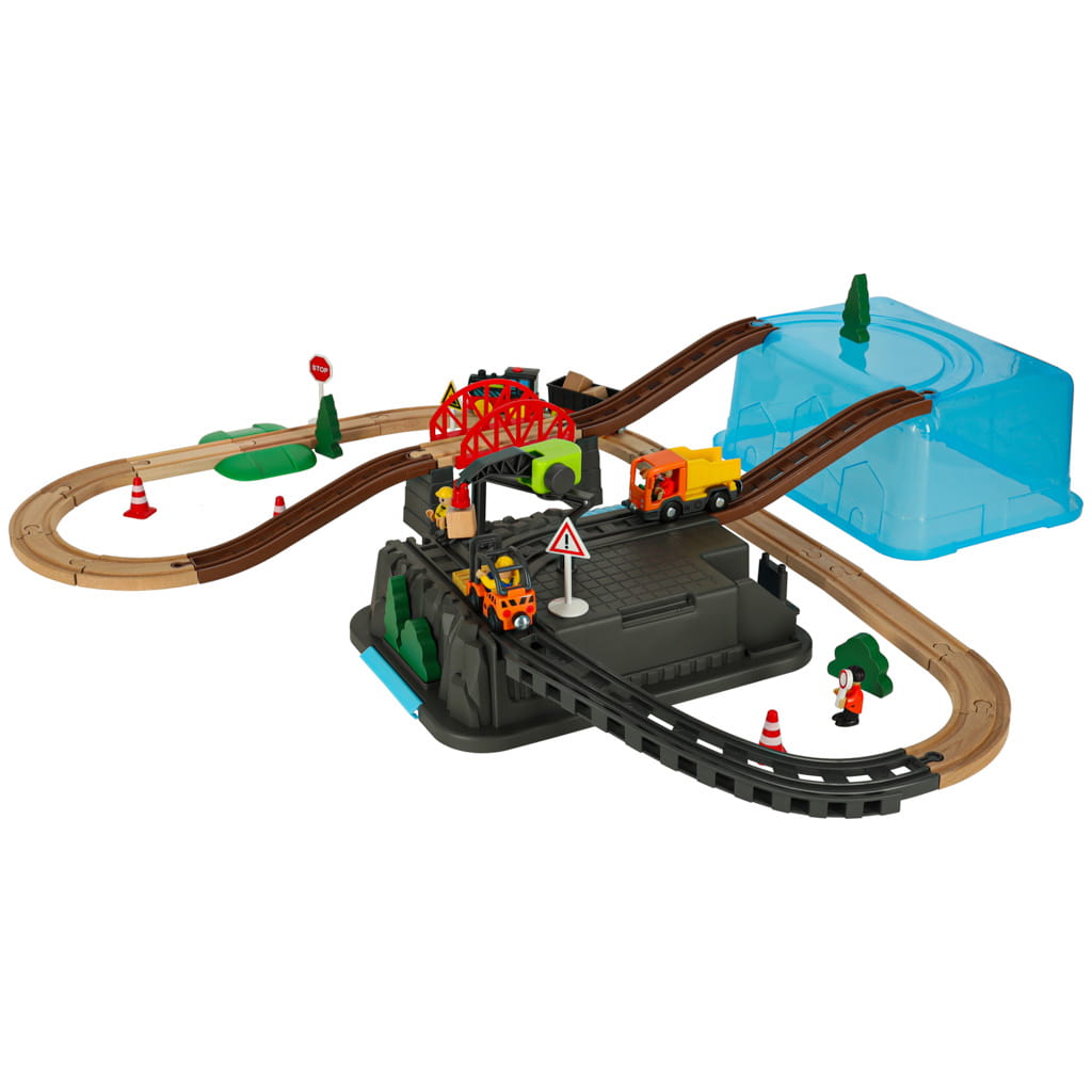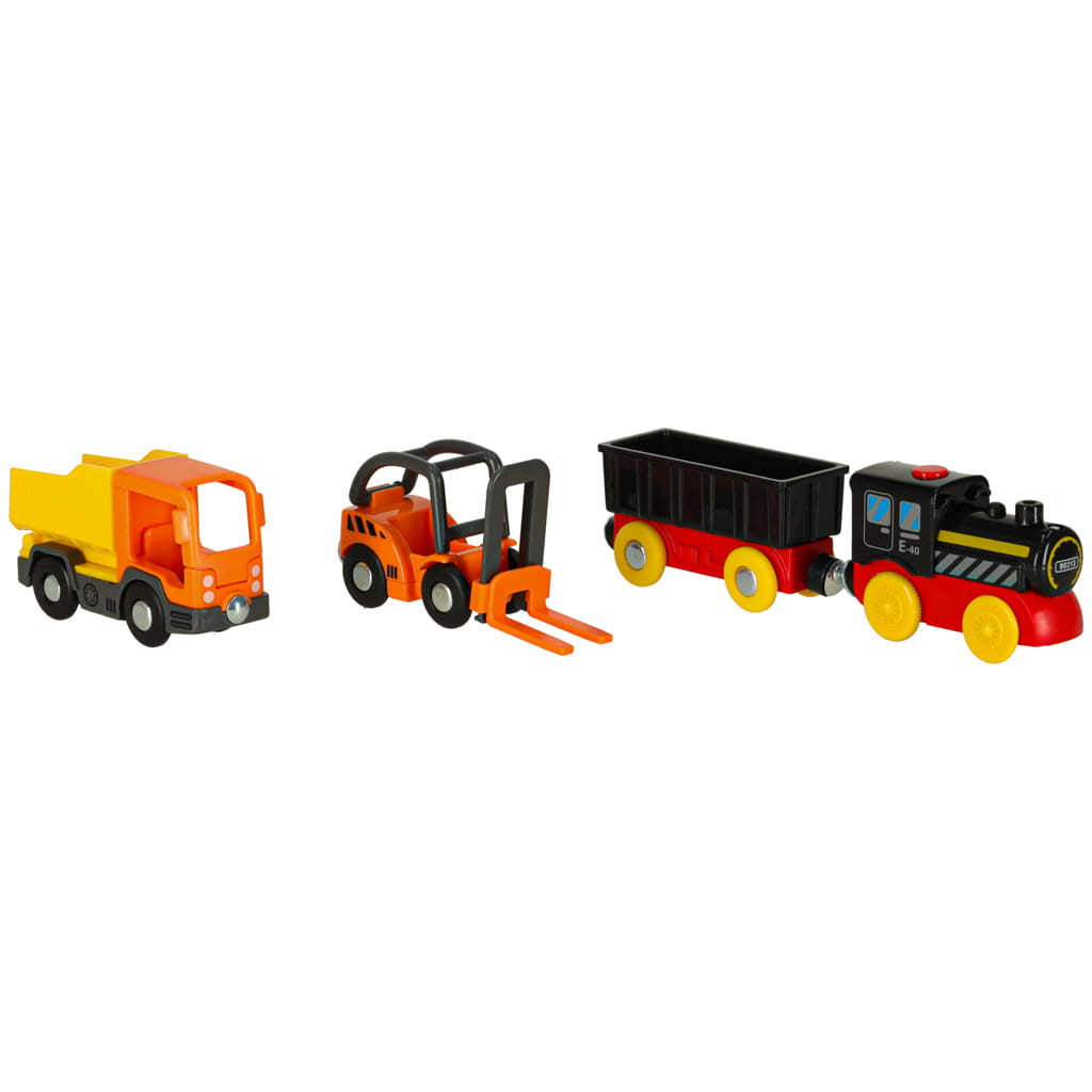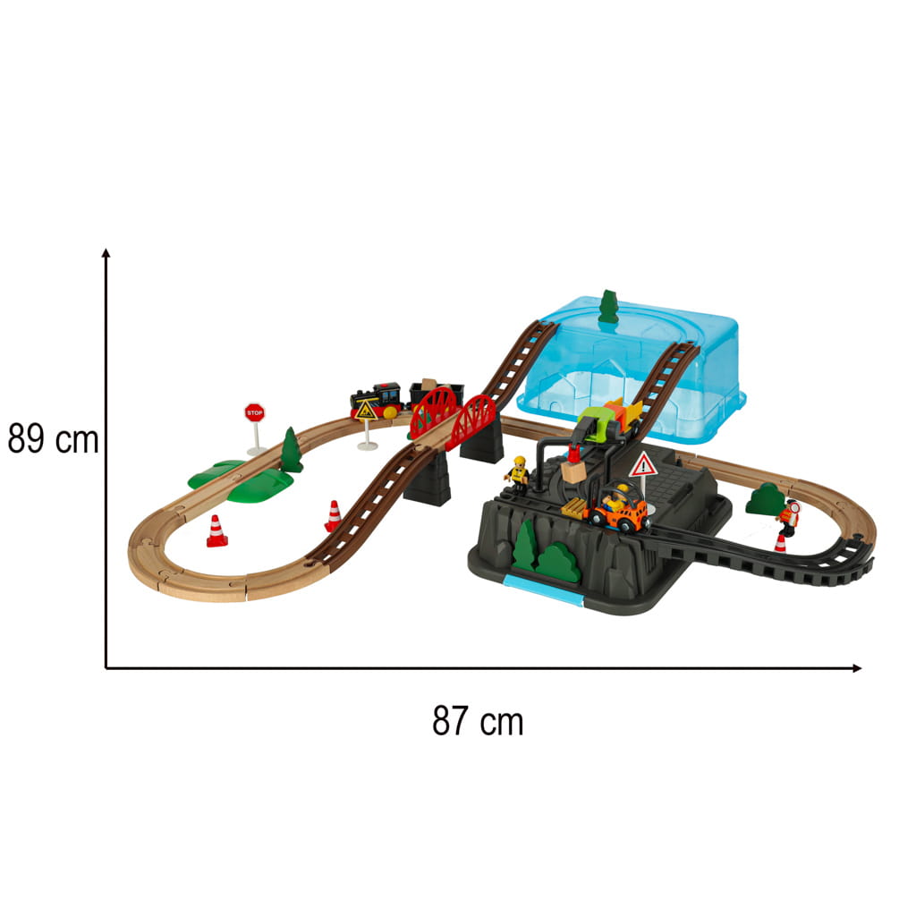 Kolejka drewniana pociąg lokomotywa plac budowy 55 elementów