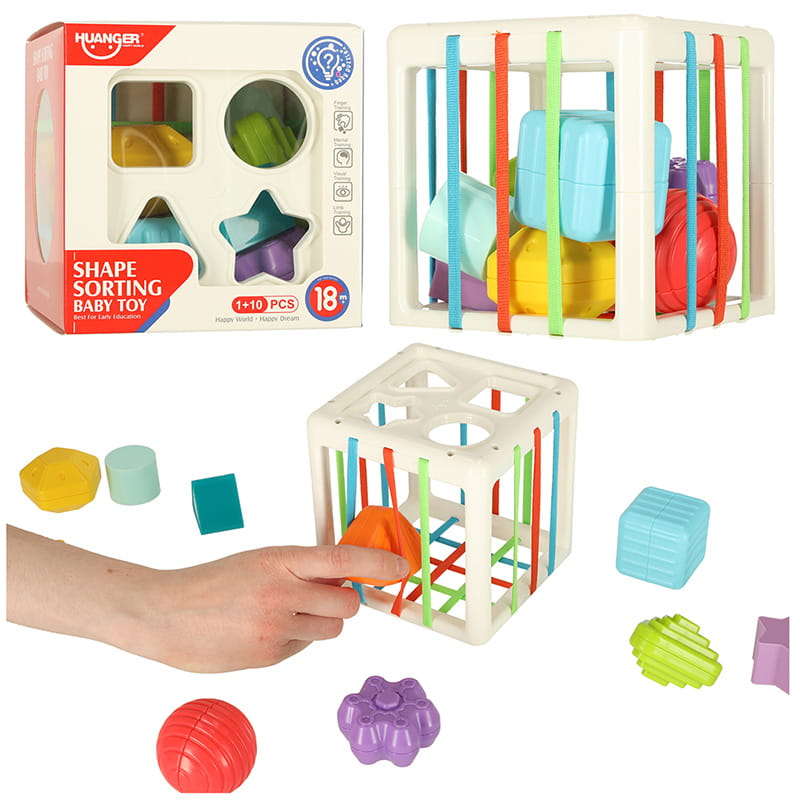 Kostka sensoryczna elastyczna układanka sorter kształtów zabawka wtykana 11 el.