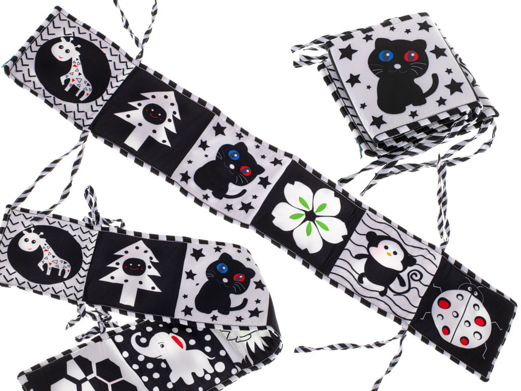 Książeczka sensoryczna kontrastowa miękka nauka widzenia ochraniacz do łóżeczka mata edukacyjna kształty dźwięki
