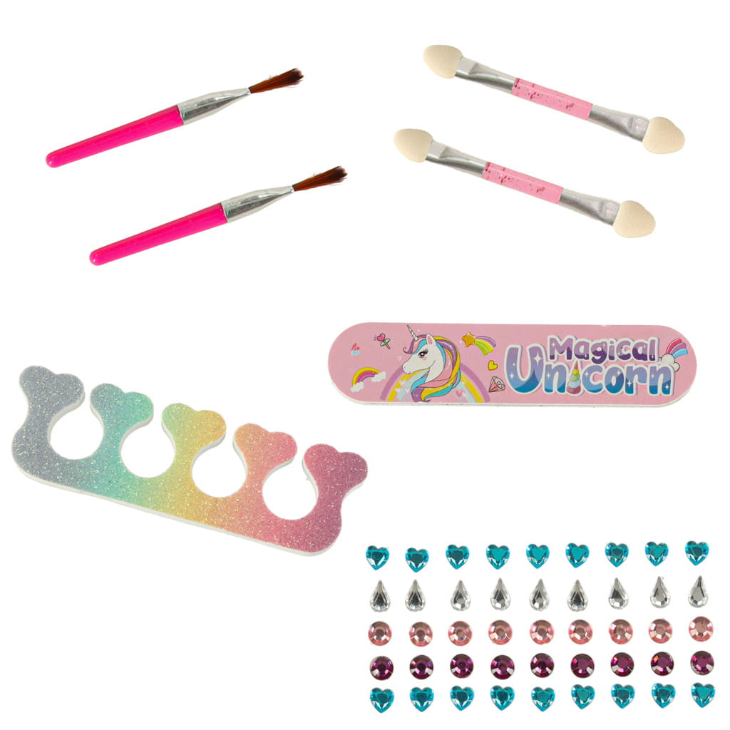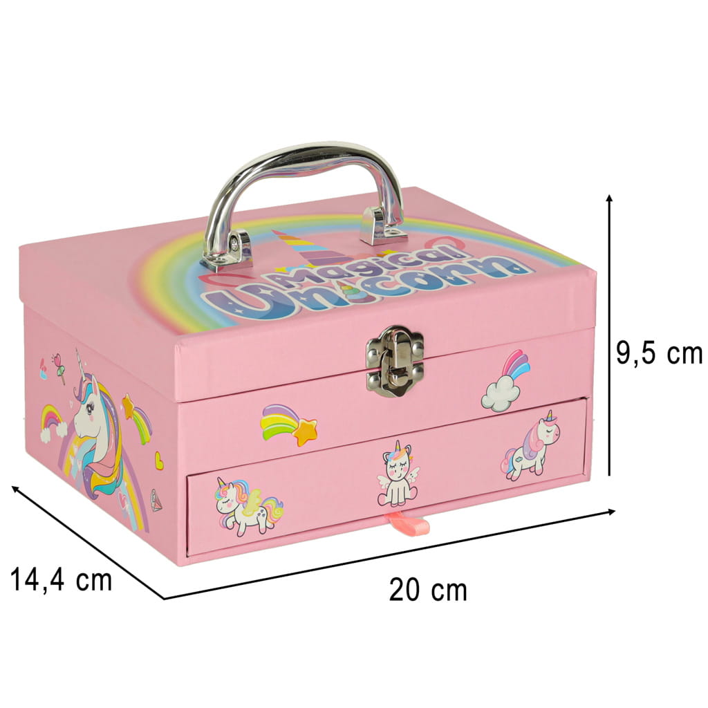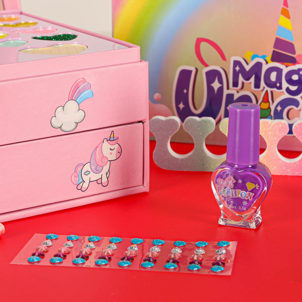 Kuferek zestaw kosmetyków do makijażu i paznokci makeup kosmetyki cienie lakiery szuflady jednorożec