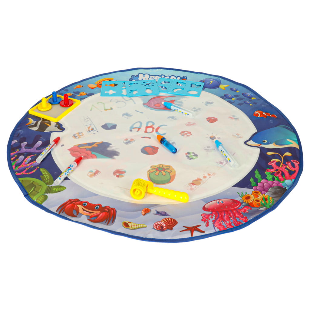 Mata wodna do malowania rysowania wodą mazaki pieczątki szablony wałek okrągła 80cm wodny świat