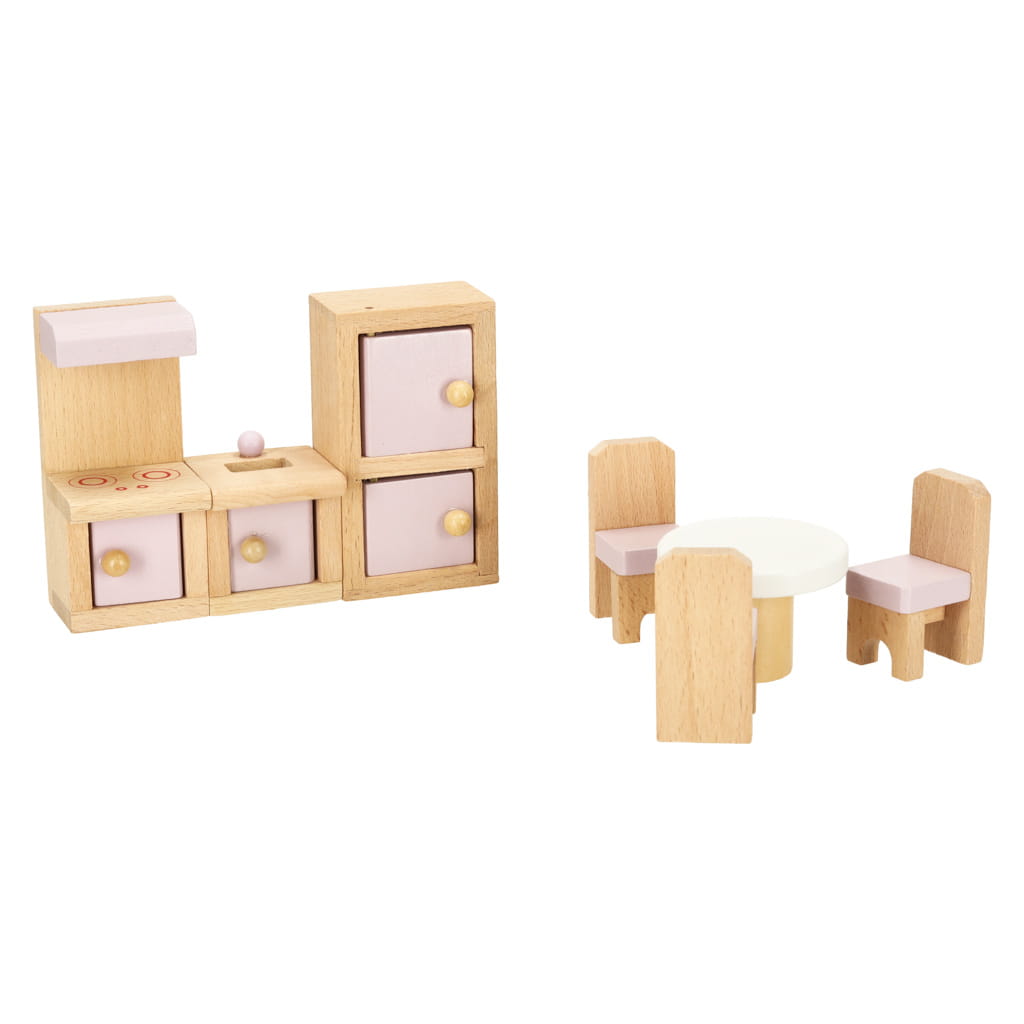 Mebelki do domku dla lalek salon sypialnia łazienka kuchnia drewniane różowe