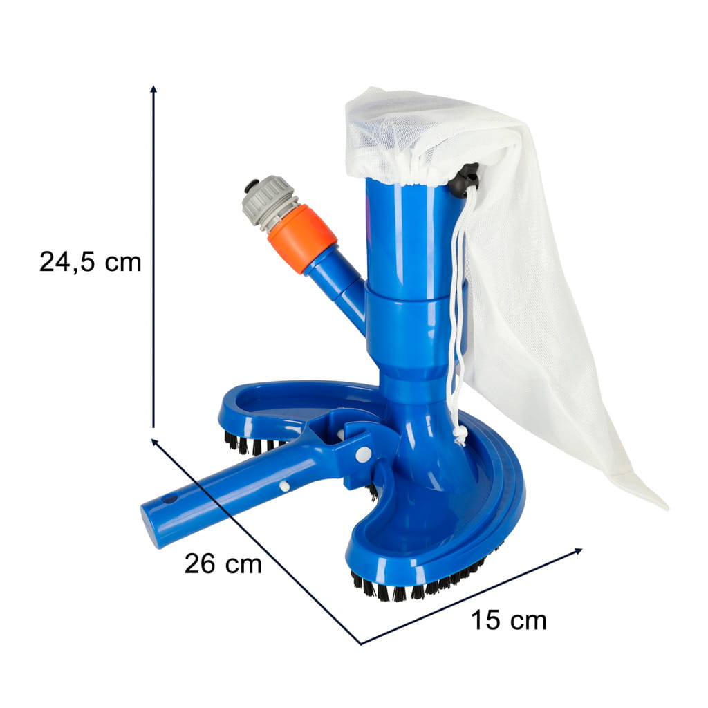 ||| Tworzywo: plastik Wymiary odkurzacza (cała konstrukcja): 26 cm x 15 cm x 24,5 cm Wymiary opakowania: 30 cm x 30 cm x 12 cm Zawartość zestawu: Odkurzacz z głowicą czyszczącą w kształcie półksiężyca Szybko-złącze do węża ogrodowego Uchwyt mocowania kija Torba z siatki na zanieczyszczenia Zapomnij o męczącym szorowaniu dna basenu! Z odkurzaczem do basenu kąpiel stanie się jeszcze przyjemniejsza, a utrzymanie basenu w idealnym stanie będzie dziecinnie proste. Dzięki urządzeniu pozbędziesz się wszelkich zabrudzeń z dna i ścian basenu bez najmniejszego wysiłku. Szczotka usuwa nawet najmniejsze zanieczyszczenia, nie rysując przy tym powierzchni. A półokrągły kształt głowicy czyszczącej dociera do każdego zakamarka, nawet w narożnikach i na schodach. Wystarczy kilka prostych kroków, aby cieszyć się krystalicznie czystą wodą: Podłącz odkurzacz do kija i węża ogrodowego (brak w zestawie) i zanurz urządzenie w wodzie. Zacznij przesuwać odkurzacz po brudnej powierzchni (woda pod ciśnieniem generuje silną siłę ssącą, która wciąga zanieczyszczenia do siatkowego worka) Po zakończeniu czyszczenia opróżnij worek i gotowe! Odkurzacz pasuje do kija, tyczki o średnicy łączenia 30 milimetrów. Produkt zapakowany w foliowe opakowanie.