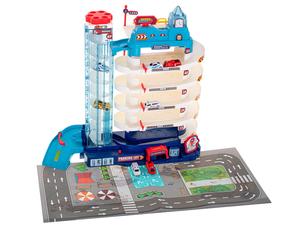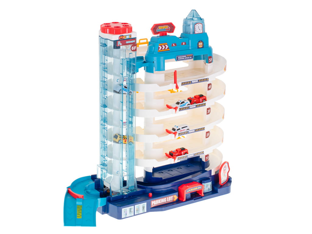 PARKING GARŻ 5 POZIOMÓW ELEKTRYCZNA WINDA + 8 AUT to idealne rozwiązanie dla małych miłośników motoryzacji. W dużym mieście, gdzie każdy się spieszy, ten parking pozwoli na sprawne parkowanie i unikanie korków. Dzięki pięciu poziomom, dzieci mogą bawić się w parkowanie aż ośmiu samochodów, które znajdują się w zestawie. Automatyczna winda z efektami świetlnymi sprawi, że wjazd na górę stanie się prawdziwą atrakcją. W przypadku awarii, można manualnie sterować windą, co dodaje zabawie elementu interakcji. Dodatkowo, wieża z zegarem oferuje efekty dźwiękowe, które umilą czas spędzany na parkingu. Melodię można włączać i wyłączać, co pozwala na dostosowanie zabawy do preferencji. Ten niezwykły parking nie tylko dostarcza długich godzin rozrywki, ale również wspiera rozwój manualny i logiczne myślenie dzieci. Estetyczne wykonanie i nowoczesny design przyciągną uwagę każdego malucha, czyniąc ten zestaw fantastycznym prezentem.