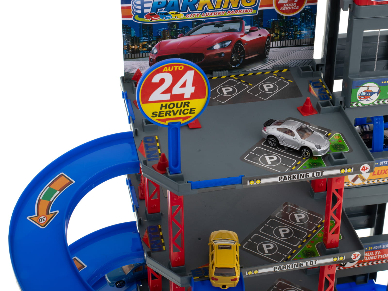 PARKING PIĘTROWY GARAŻ STACJA BENZYNOWA MYJNIA to idealna zabawka dla małych pasjonatów motoryzacji. W zestawie znajdziesz wszystkie elementy niezbędne do budowy wielopoziomowego parkingu, w tym windę oraz cztery metalowe autka w różnych kolorach. Parking pomieści aż 24 pojazdy, co pozwoli na łatwe uporządkowanie zabawek Twojego dziecka. Dzięki unoszonemu szlabanowi i manualnej windzie, zabawa staje się jeszcze bardziej interaktywna. Na parterze znajdziesz stację benzynową oraz myjnię, gdzie Twoje autka będą mogły błyszczeć. To nie tylko parking, ale także miejsce do kreatywnej zabawy, które zachęca do wspólnego spędzania czasu. Zestaw jest wzbogacony o znaki i barierki, które dodają realizmu i sprawiają, że dzieci mogą w pełni cieszyć się swoją przygodą. To doskonały wybór na prezent, który rozwija małą motorykę i ćwiczy chwytność.
