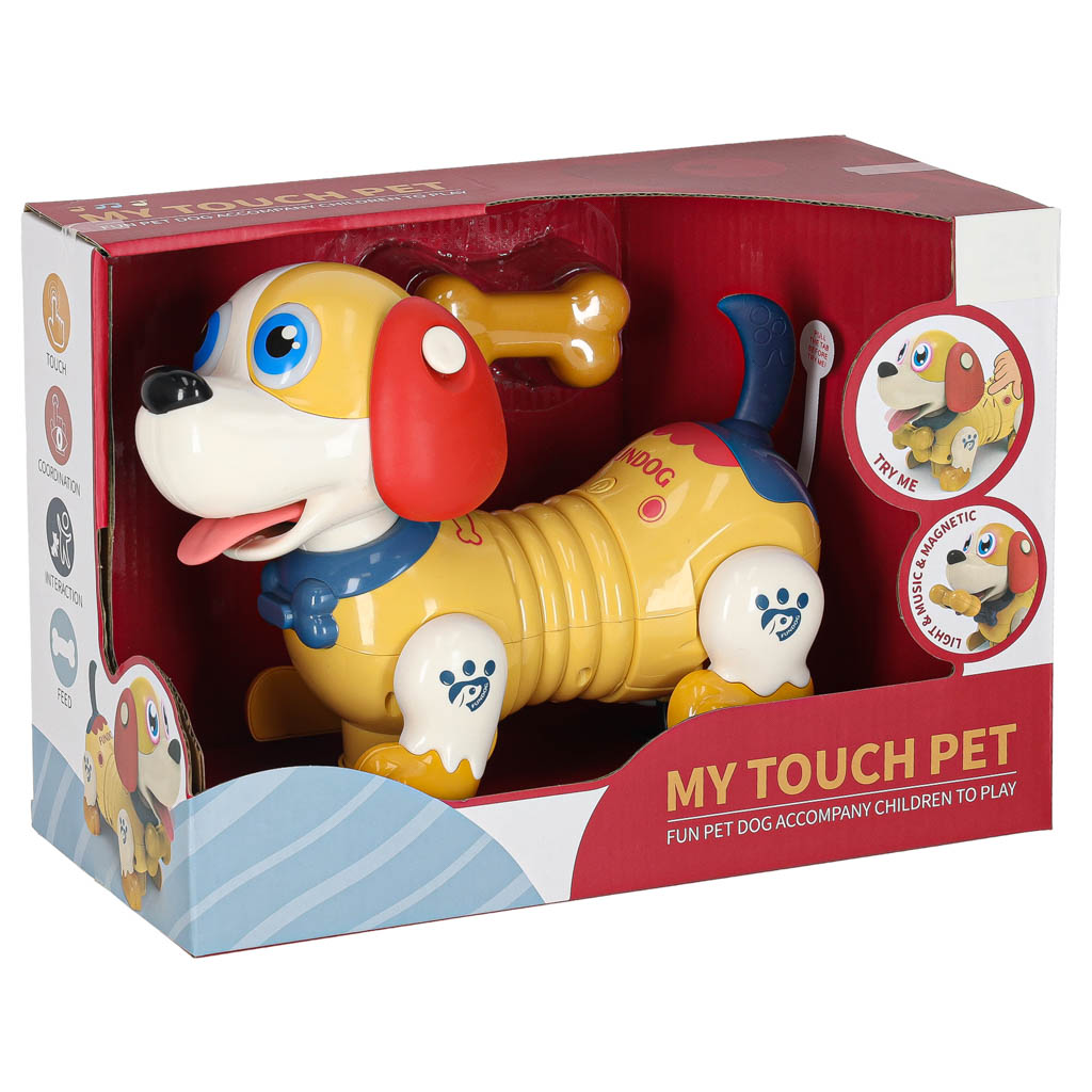 Pies piesek interaktywny z kością robot reaguje na dotyk