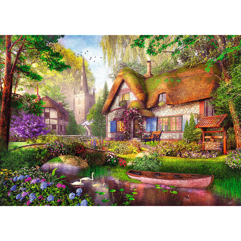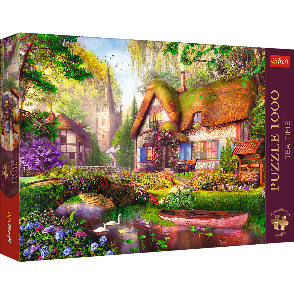 Puzzle- 1000 Premium Plus - Tea Time: Urocza chatka w lesie to idealna propozycja dla miłośników układania puzzli. Dzięki nowej jakości Premium Plus, każdy element doskonale do siebie pasuje, co sprawia, że układanie staje się prawdziwą przyjemnością. Wysokiej jakości tektura zapewnia trwałość i odporność na uszkodzenia, a wyselekcjonowane obrazy zachwycają różnorodnością detali. W opakowaniu znajduje się plakat, który ułatwia proces układania, co jest szczególnie pomocne dla początkujących. Po ułożeniu puzzli powstaje piękny obraz o wymiarach 683x480 mm, idealny do dekoracji wnętrza. Puzzle przedstawiają urokliwy dom położony nad rzeczką, co dodatkowo wprowadza w atmosferę relaksu i spokoju. To doskonały sposób na spędzenie czasu w gronie rodziny i przyjaciół, rozwijając jednocześnie zdolności manualne i koncentrację.