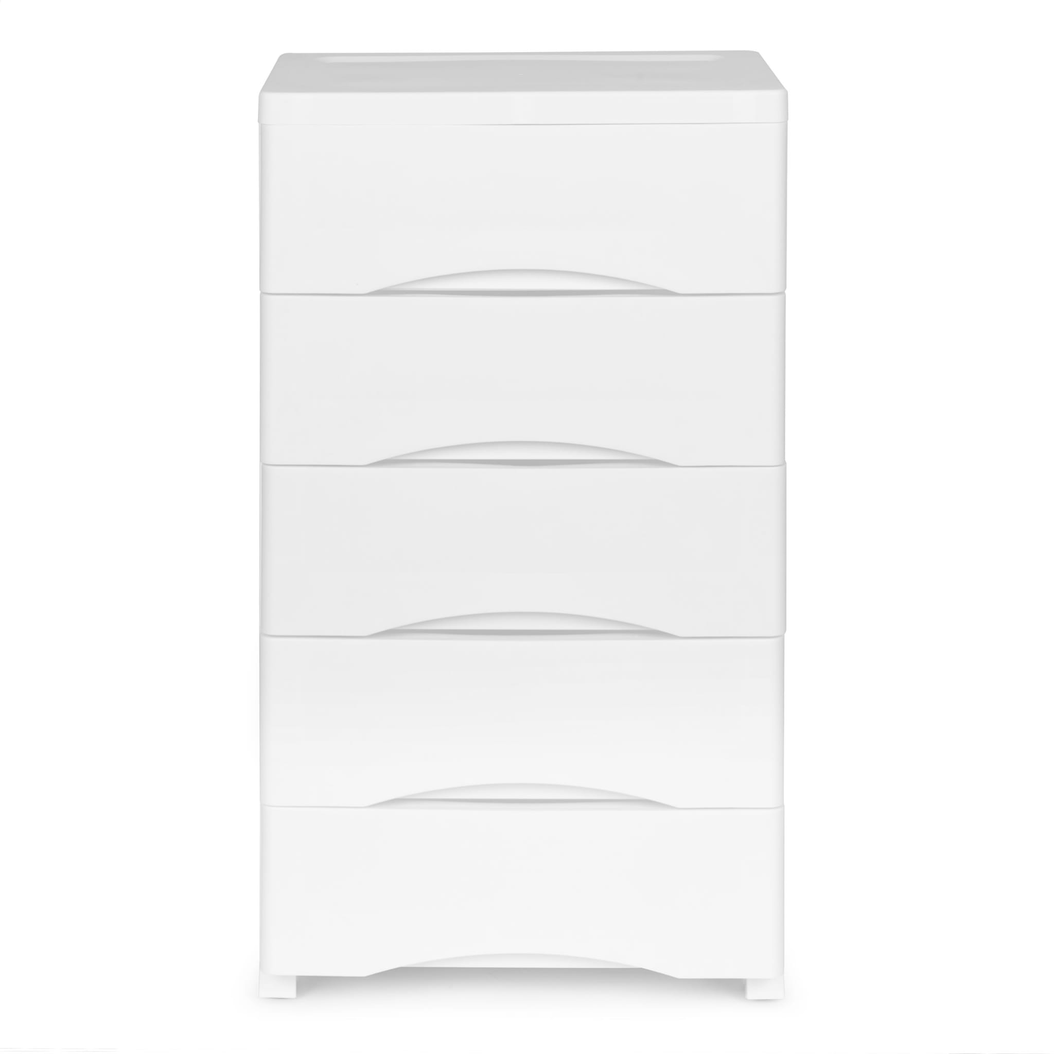 Regał z 5 wysuwanymi szufladami nogi z kółkami biały ModernHome