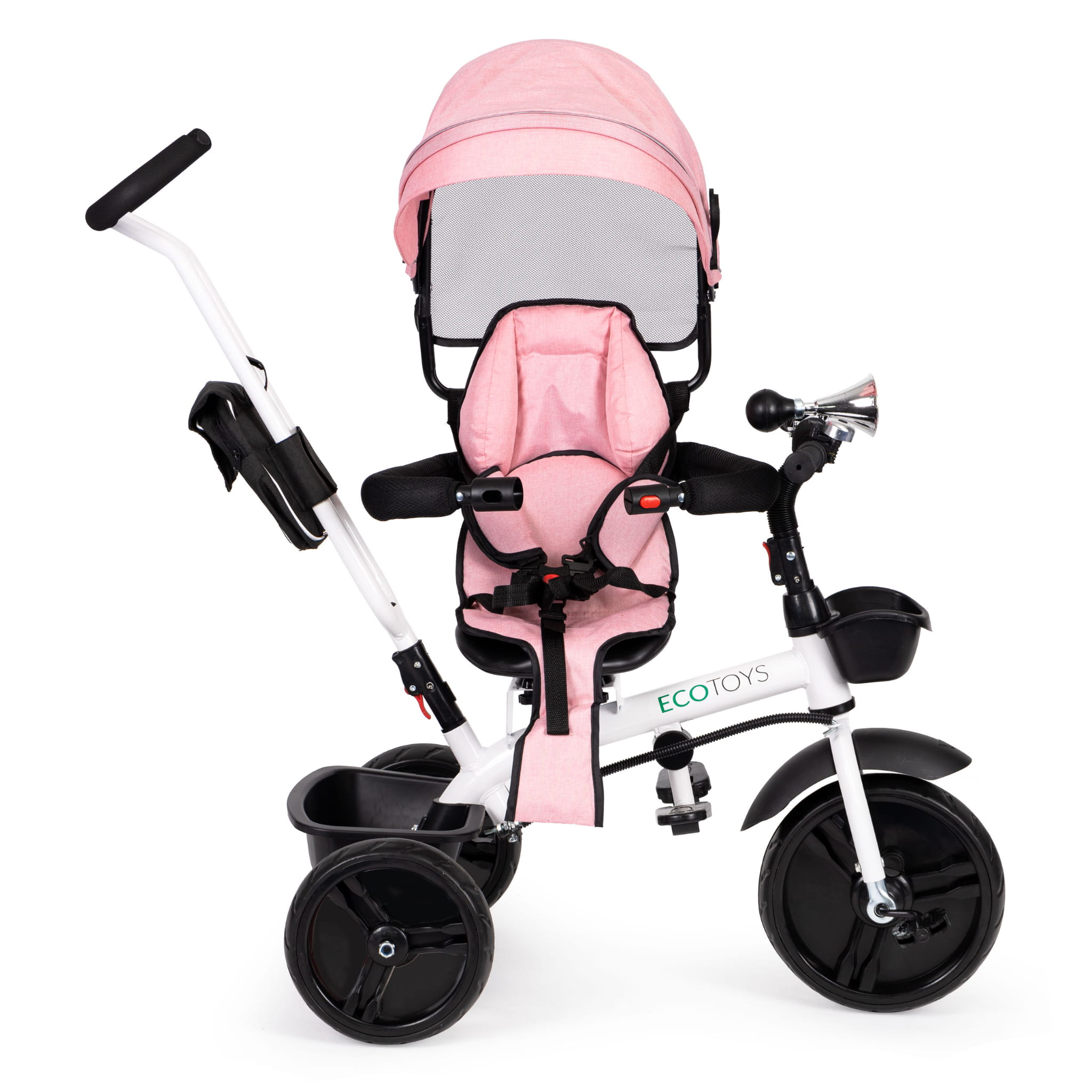 Rowerek trójkołowy spacerówka obracany fotelik 360* Różowy ECOTOYS