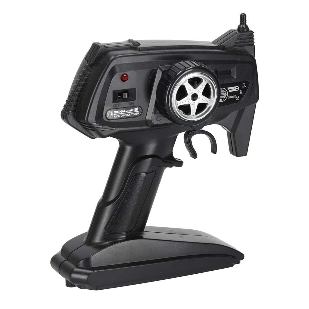 SAMOCHÓD RC 1:8 CYBER PICKUP TRUCK - ZDALNIE STEROWANY MODEL TERENOWY 2,4GHZ to idealny wybór dla miłośników dynamicznej jazdy. Dzięki napędowi na 4 koła (4WD) oraz sprężynowemu zawieszeniu, ten potężny model radzi sobie w trudnych warunkach, pokonując przeszkody z łatwością. Duże opony z TPR o średnicy 14 cm zapewniają doskonałą przyczepność, a maksymalny kąt wspinania wynoszący 45° sprawia, że zabawa staje się jeszcze bardziej ekscytująca. Model działa na częstotliwości 2.4 GHz, co gwarantuje stabilne połączenie z pilotem na zasięgu do 25 metrów. Dodatkowo, efekty świetlne nadają realizmu podczas jazdy, a akumulator 7.4 V pozwala na około 20 minut intensywnej zabawy. Solidna konstrukcja z tworzywa sztucznego oraz imponująca skala 1:8 (45 cm długości) czynią ten model wyjątkowym. W zestawie znajduje się także mniejszy samochodzik, idealny do zabawy w pomieszczeniu.