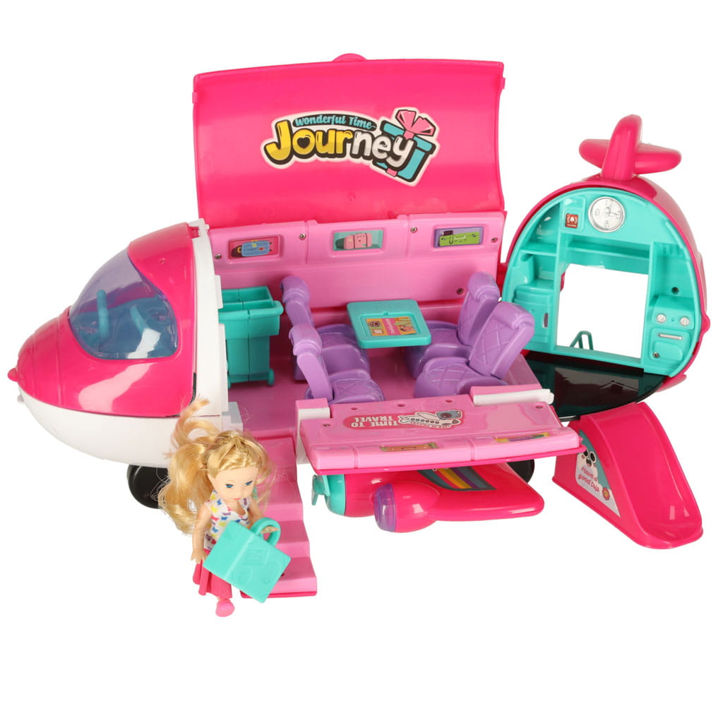 Samolot dla lalek pasażerski 2w1 rozkładany akcesoria różowy