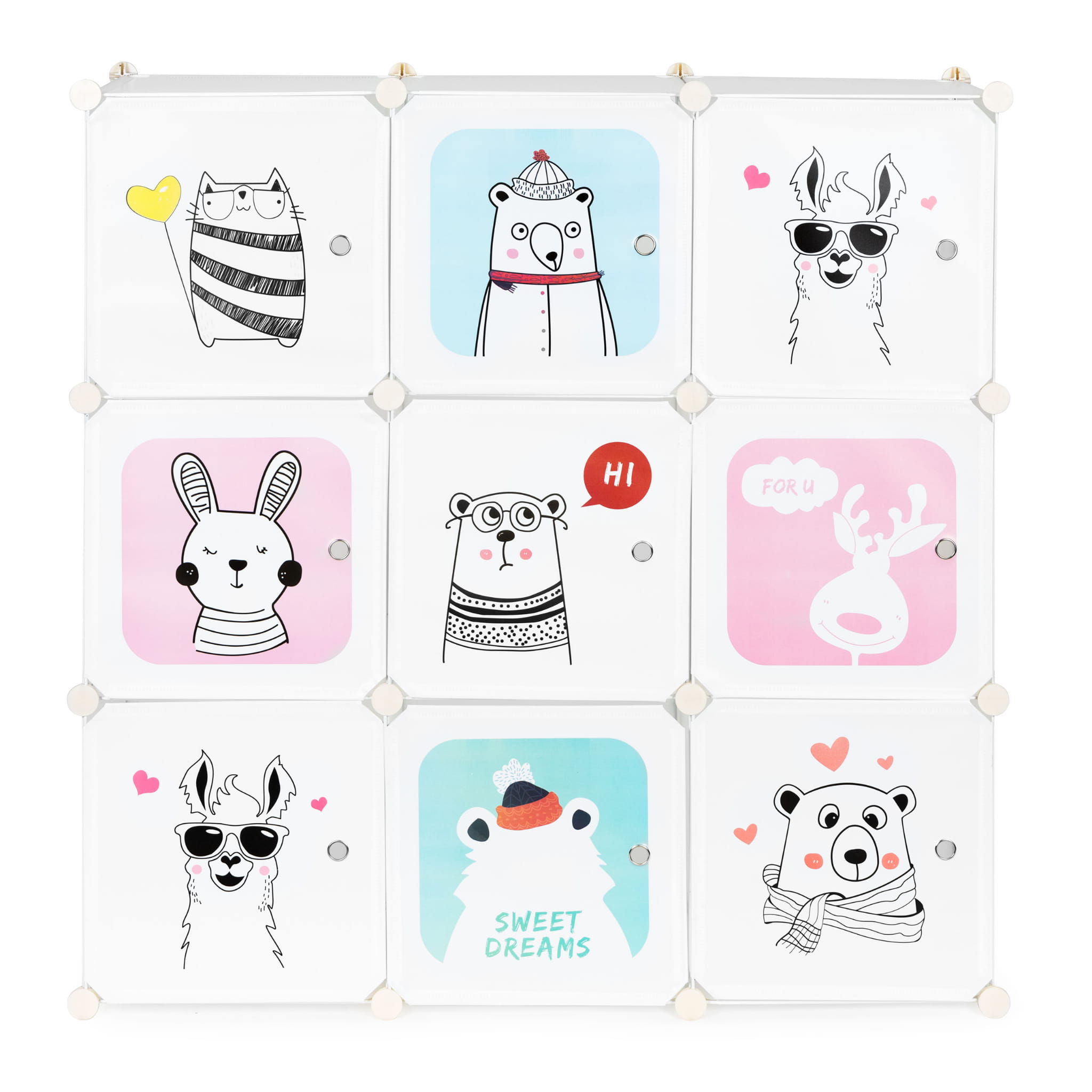 Przedstawiamy regał dla dzieci idealny do przechowywania ich ukochanych zabawek, książek i drobiazgów. Ta modułowa szafka składa się z 9 półek, które można dowolnie aranżować, aby dopasować mebel do indywidualnych potrzeb i preferencji. Głównym atutem tej szafy jest jej lekka konstrukcja, zaprojektowana z myślą o bezpieczeństwie i łatwości użytkowania przez najmłodszych. Została wykonana z trwałych i odpornych na uszkodzenia polipropylenowych paneli. Aby zapewnić dodatkową wytrzymałość i stabilność, zastosowano metalowy stelaż, który wzmocnił całą konstrukcję. Szafa wyposażona jest w łatwo otwierane drzwiczki z kolorową grafiką, które zachwycą dziecięce serca. Kolorowe obrazki przedstawiają bajkowe postacie, zwierzątka lub inne motywy, które ożywią przestrzeń dziecięcego pokoju. Dzięki temu regał nie tylko pełni funkcję praktyczną, ale również estetyczną.