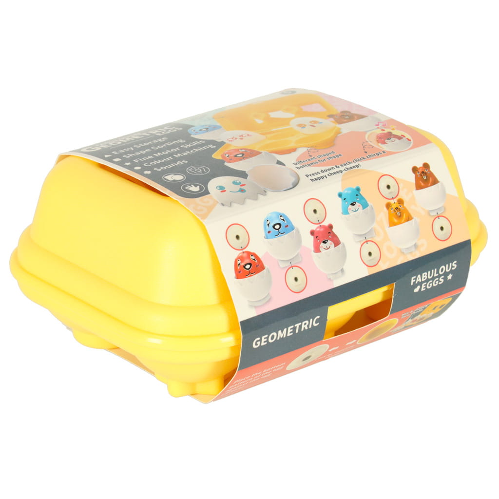 SORTER KSZTAŁTÓW - JAJKA EDUKACYJNE, ROZPOZNAWANIE KSZTAŁTÓW I KOLORÓW Odkryj radość, jaką daje zabawa z jajkami, które jednocześnie uczą i bawią! Nasza układanka edukacyjna sorter jajka to wyjątkowa zabawka edukacyjna, która wspiera rozwój umiejętności poznawczych dziecka już od 18 miesiąca życia. W kolorowym pudełku znajduje się zestaw edukacyjnych jajek, które trzeba połączyć parami - według koloru, kształtu i wzoru ukrytego od spodu. To nie wszystko - w środku każdego jajka czeka urocze zwierzątko, które czyni tę zabawę jeszcze ciekawszą! Zabawa polega na rozdzielaniu i łączeniu połówek jajek, dopasowywaniu kształtów i kolorów, odkrywaniu i rozpoznawaniu zwierzątek w środku, oraz ćwiczeniu spostrzegawczości i koordynacji wzrokowo-ruchowej. Dziecko uczy się rozpoznawać różne kształty, nazywać kolory i logicznie analizować, który element pasuje do którego - to prawdziwa kreatywna nauka przez zabawę! Wspaniała zabawka - idealna na prezent!