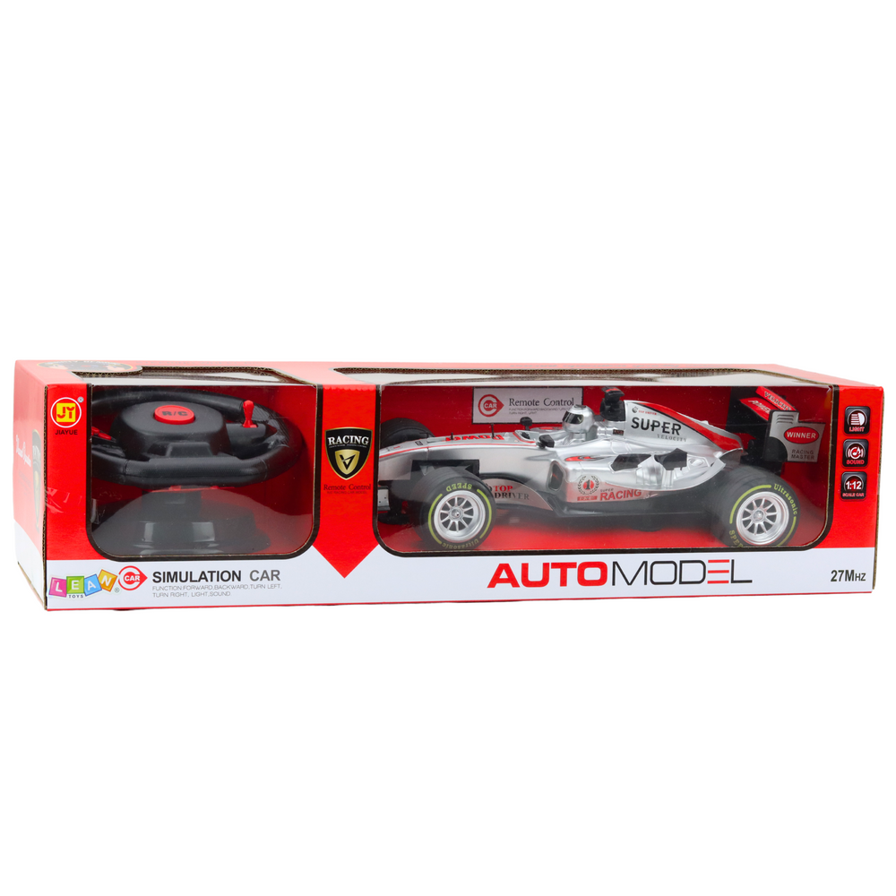 Wyścigówka Zdalnie Sterowana RC Kierownica Światła Dźwięki 1:12 Srebrna