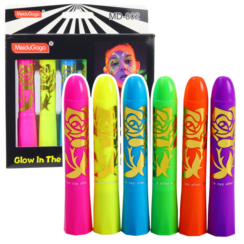 Zestaw Do Malowania Twarzy Pisaki Kredki Neonowe UV Fluorescencyjne 6szt