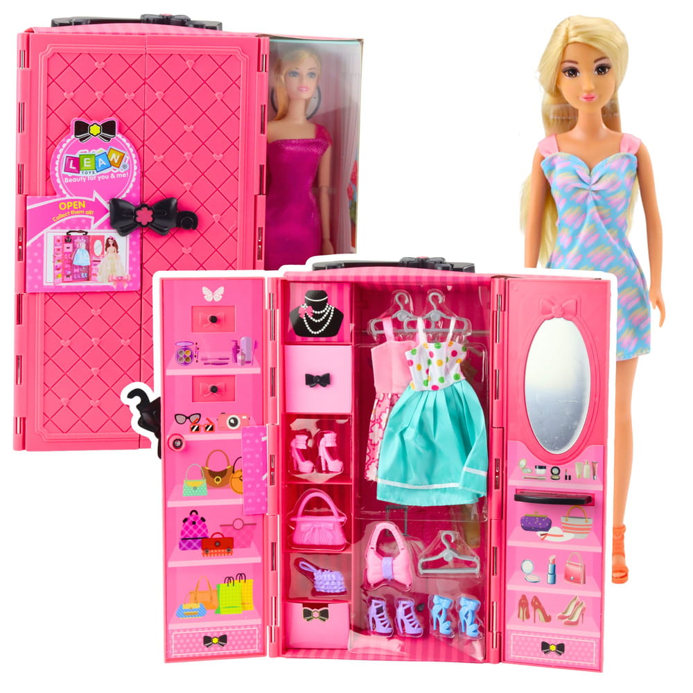 Zestaw Lalka Z Szafą Akcesoria Różowa Ubrania Dodatki Moda Przebieranki
