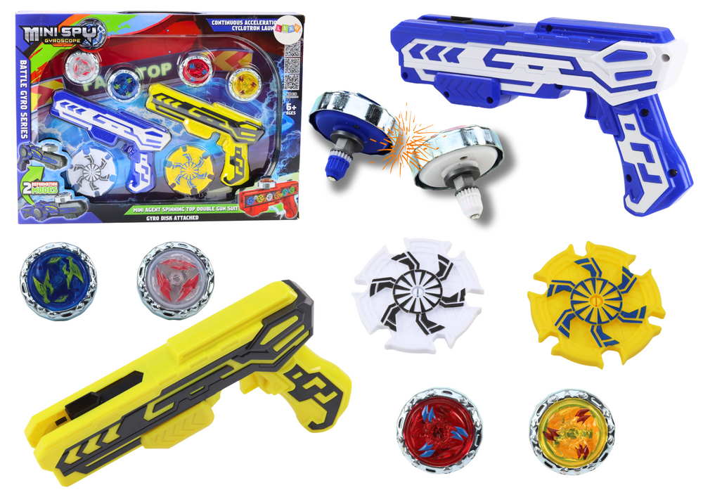 Przygotuj się na emocjonującą rywalizację dzięki zestawowi pistoletów wyrzutni w kolorze niebieskim oraz żółtym i czterech metalowych krążków! Ten wyjątkowy zestaw to świetna rozrywka dla dzieci, które lubią zabawę pełną akcji. Wystarczy załadować krążek do wyrzutni, wycelować i wystrzelić go w kierunku przeciwnika. Metalowe krążki kręcą się na arenie, zderzając się i rywalizując o zwycięstwo – wygrywa ten, który jako ostatni pozostanie w ruchu. Zestaw wyróżnia się trwałością i wytrzymałością: metalowe krążki są odporne na zderzenia, a pistolet wyrzutnia łatwy w obsłudze. Krążki posiadają efekty świetlne, które dostarczają jeszcze większych wrażeń podczas zabawy. To idealny prezent dla każdego, kto lubi rywalizację i świetną zabawę. Sprawdź, kto w Twojej rodzinie zostanie mistrzem areny!