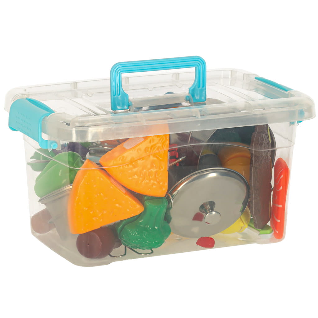 Zestaw warzyw do krojenia to idealna zabawka dla Twojego małego kucharza! 36-elementowy zestaw wprowadzi dziecko w świat gotowania, oferując możliwość krojenia kolorowych składników i ich „gotowania”. Różnorodne warzywa, owoce i inne produkty spożywcze rozdzielają się na mniejsze części, co sprawia, że maluch może ćwiczyć swoje zdolności manualne, „krojąc” produkty przy pomocy plastikowego noża. Zestaw ten nie tylko rozwija sprawność manualną, ale także pobudza kreatywność i wyobraźnię, pozwalając na tworzenie własnych potraw i aranżowanie kulinarnych kompozycji. Dodatkowo, zachęca do wspólnej zabawy z rówieśnikami lub rodzeństwem, co sprzyja budowaniu więzi i nauce współpracy. Dzięki praktycznemu plastikowemu pudełku z uchwytem, sprzątanie po zabawie staje się łatwe i przyjemne, co z pewnością doceni każdy rodzic.