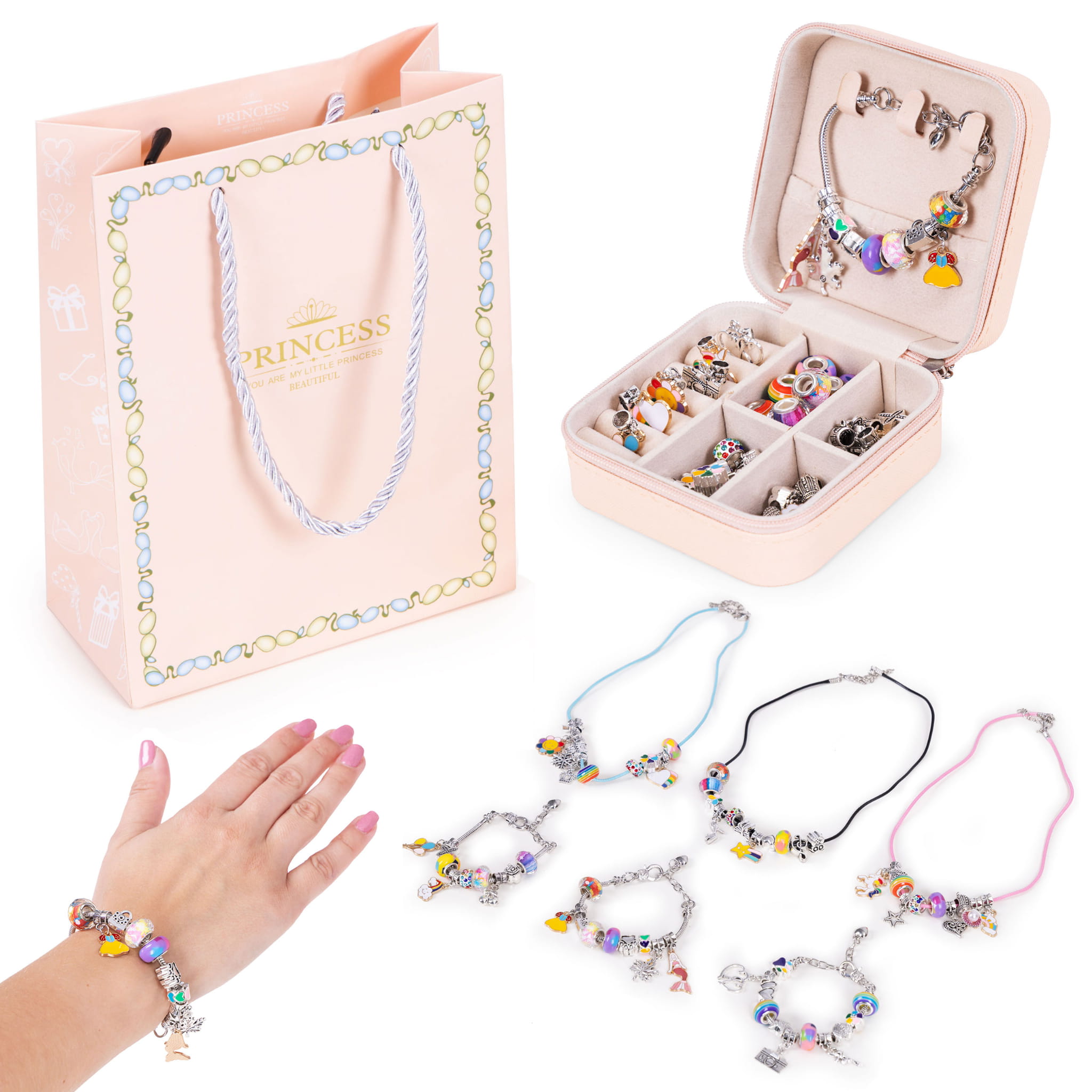 Zestaw do robienia bransoletek naszyjników charmsy koraliki 66 elementów + organizer i torba