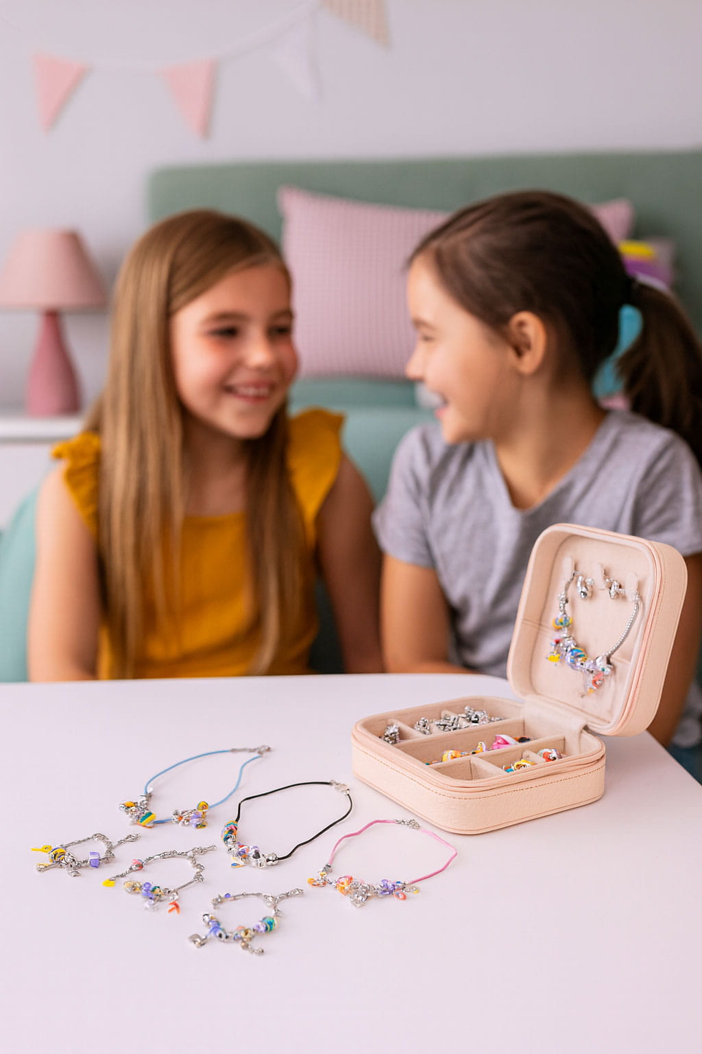 Zestaw do robienia bransoletek to idealna propozycja dla małych projektantek i fanek błyskotek. Zawiera aż 66 elementów, w tym 3 bransoletki oraz 3 naszyjniki, co sprawia, że każda dziewczynka może stworzyć coś wyjątkowego. Organizer do przechowywania biżuterii oraz torba prezentowa z napisem "Princess" dodają wyjątkowego uroku. Zestaw nie tylko rozwija kreatywność, ale także umiejętności manualne i wyobraźnię. Dzięki różnorodnym koralikom, zawieszkom i charmsom, każda mała artystka może zaprojektować własną, niepowtarzalną biżuterię. To doskonały sposób na spędzenie czasu z rodzeństwem lub przyjaciółkami, ucząc jednocześnie współpracy i dzielenia się. Efekt końcowy – własnoręcznie wykonana bransoletka czy naszyjnik – przynosi ogromną satysfakcję i radość.