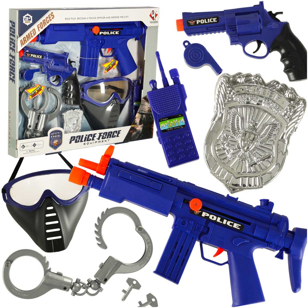 - Realistyczne akcesoria policyjne - pistolet, kajdanki, gwizdek